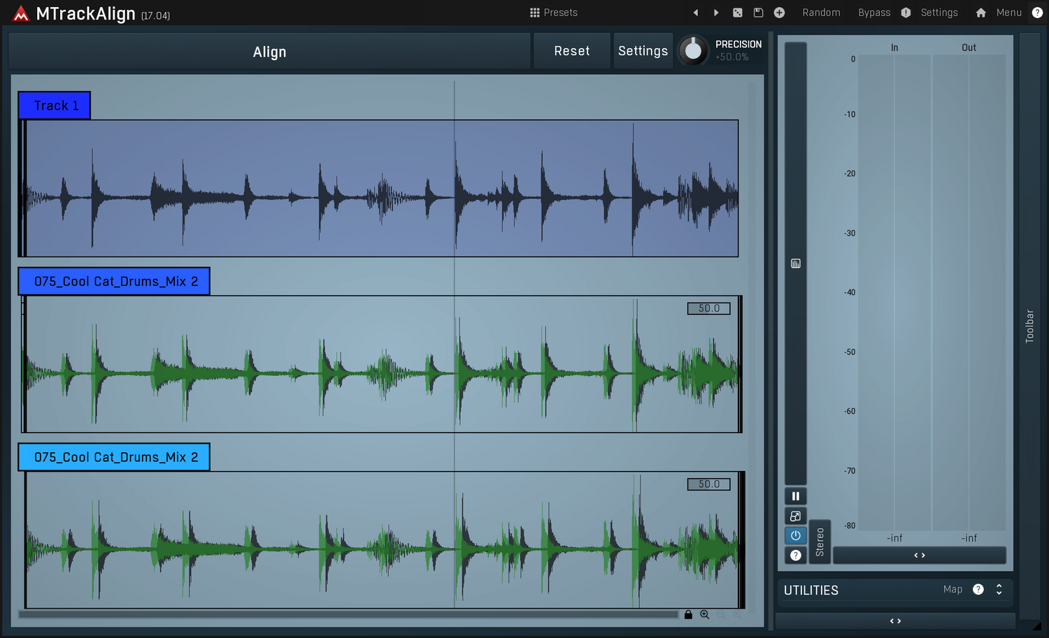 Opnå den tætte, professionelle lyd, du altid har ønsket. Uanset om du dobbeltoptager guitarer, lagdeler synth baser eller strammer en fuld rytmesektion, sikrer MTrackAlign, at hver note rammer med perfekt præcision. Brug din strammeste guitar- eller basoptagelse som guide og lås straks alle andre præstationer. Resultatet er et solidt fundament med uovertruffen punch og klarhed, fri for faseproblemer og "flamming", der plager manuelt redigerede spor.