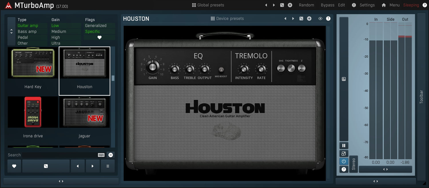 MTurboAmp kommer med næsten 30 forstærkerhoveder og et dusin distortion pedaler. Men dette antal vil konstant ændre sig - med hver udgivelse - fordi vi ikke stopper med at arbejde på nye enheder.