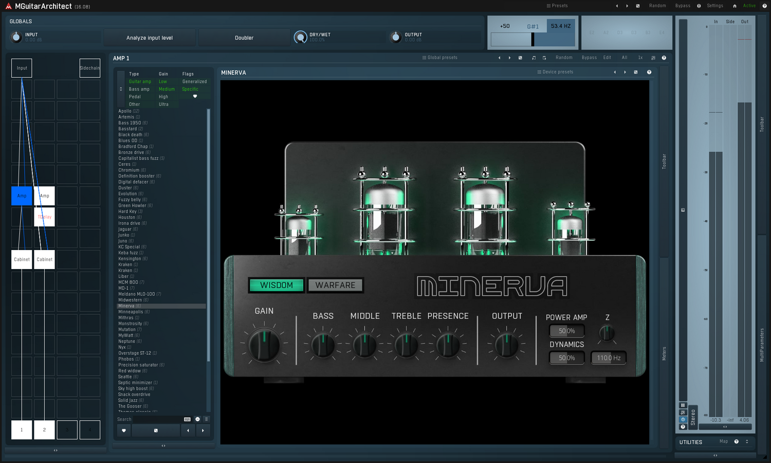 MGuitarArchitect er guitar kædesimulatoren med så mange konfigurationer, at du aldrig vil blive træt af at prøve den af. Den har alt, hvad du nogensinde får brug for til at forme en professionel guitarlyd samlet i ét plugin. Den er fyldt med effekter af alle slags, fra amps og cabinets til EQs, compressors og space processors. Alle funktioner er let tilgængelige og kan tilføjes og omarrangeres uden besvær. Og der er et væld af presets, der giver dig fantastiske resultater med blot ét klik.