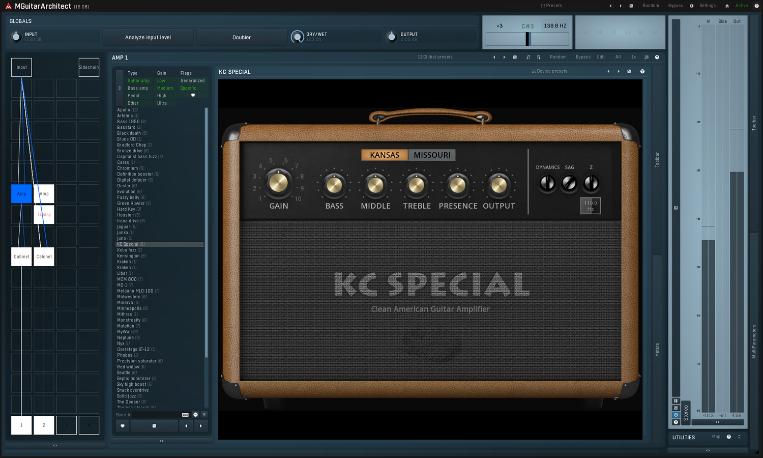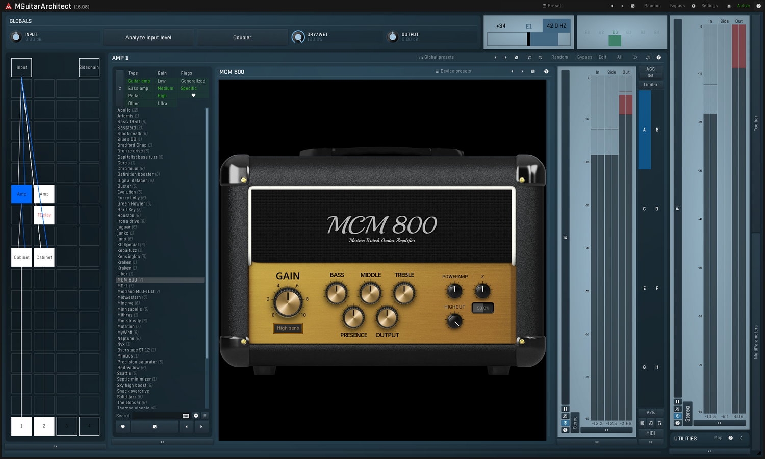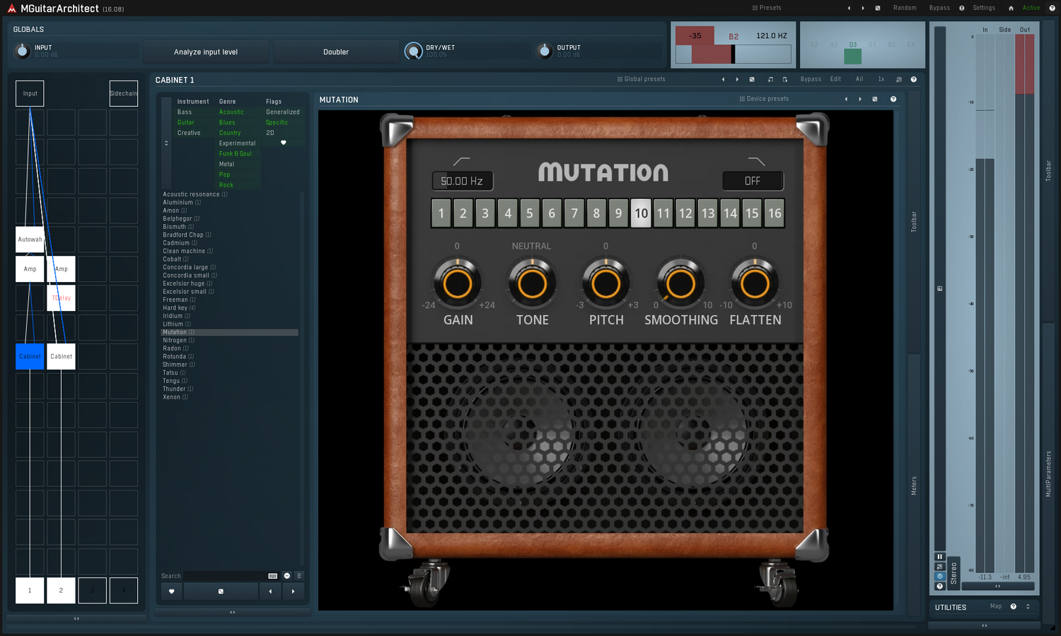 MGuitarArchitect blev skabt med guitarister af alle stilarter i tankerne. Nogle af effekterne er organiseret efter genre, så du hurtigt kan finde en country-, metal- eller endda eksperimentel stil processor. Vi ved, at der er mange kunstnere, der vælger at indspille guitar eller bas ved hjælp af direkte inputs frem for amps. Dette plugin giver dig de kreative værktøjer, der er nødvendige for at forme en tør lyd til præcis det, du ønsker. Det betyder ikke, at du ikke kan bruge det på spor indspillet med amps. MGuitarArchitect har alle de effekter, du får brug for til at forbedre din mixeproces, uanset hvordan signalet blev indspillet.