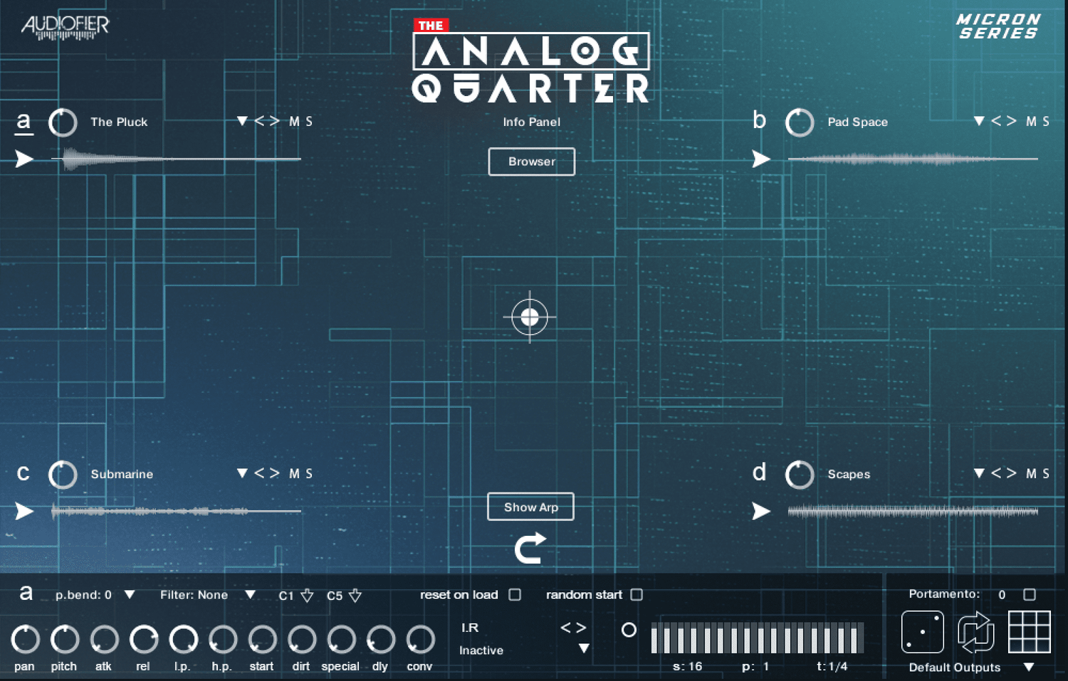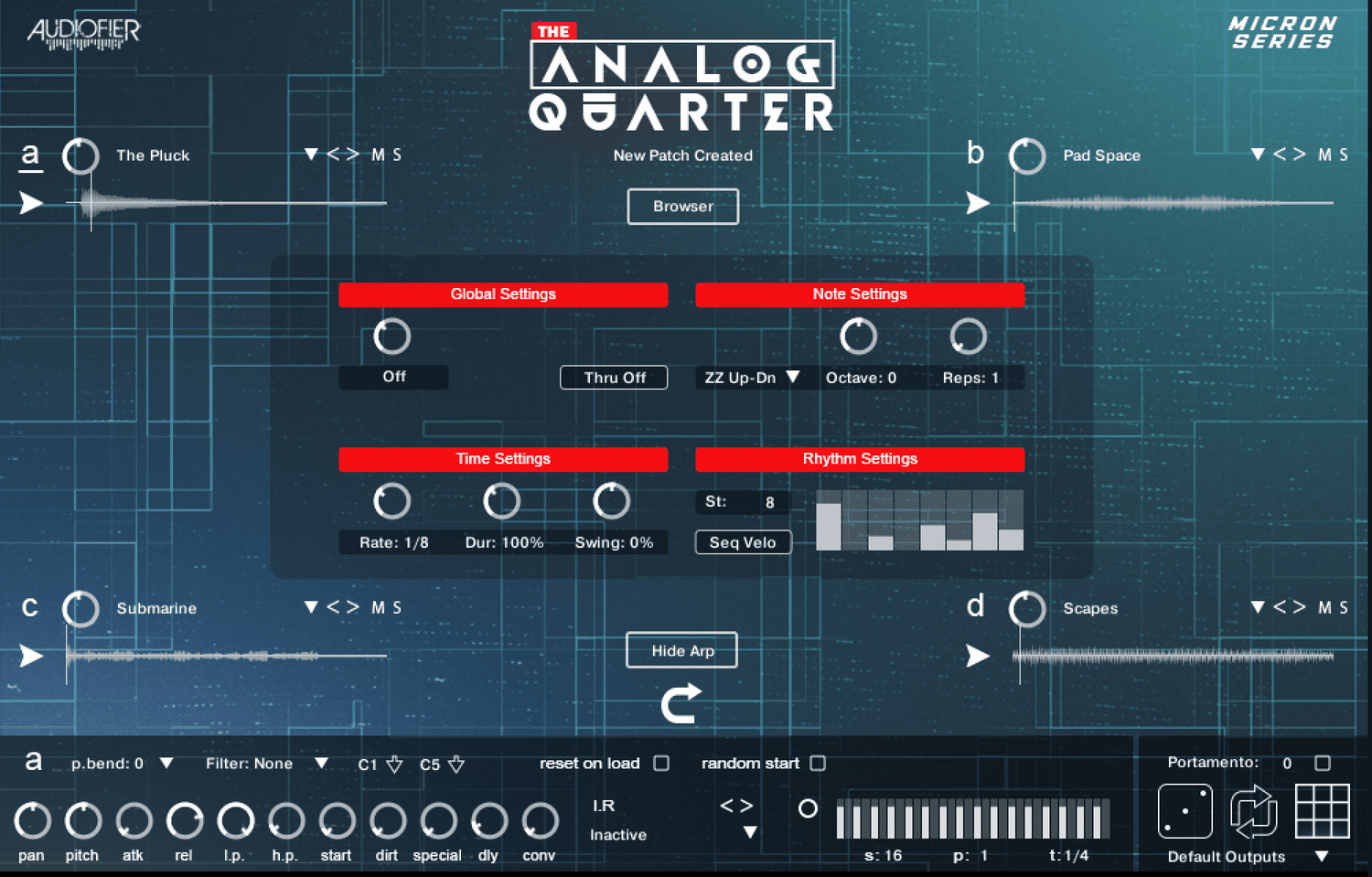 Micron: The Analog Quarter bringer retro-futuristiske toner og punchy teksturer i skarp fokus. Med en dedikeret arpeggiator-side finder du alle de værktøjer, du har brug for til at skabe dynamiske, udviklende arpeggiationer. Lydkilderne—der spænder fra plucks til skarpe, percussive toner—er skræddersyet til rytmisk bevægelse, hvilket tilføjer driv og energi til dine kompositioner med analog varme og kant.