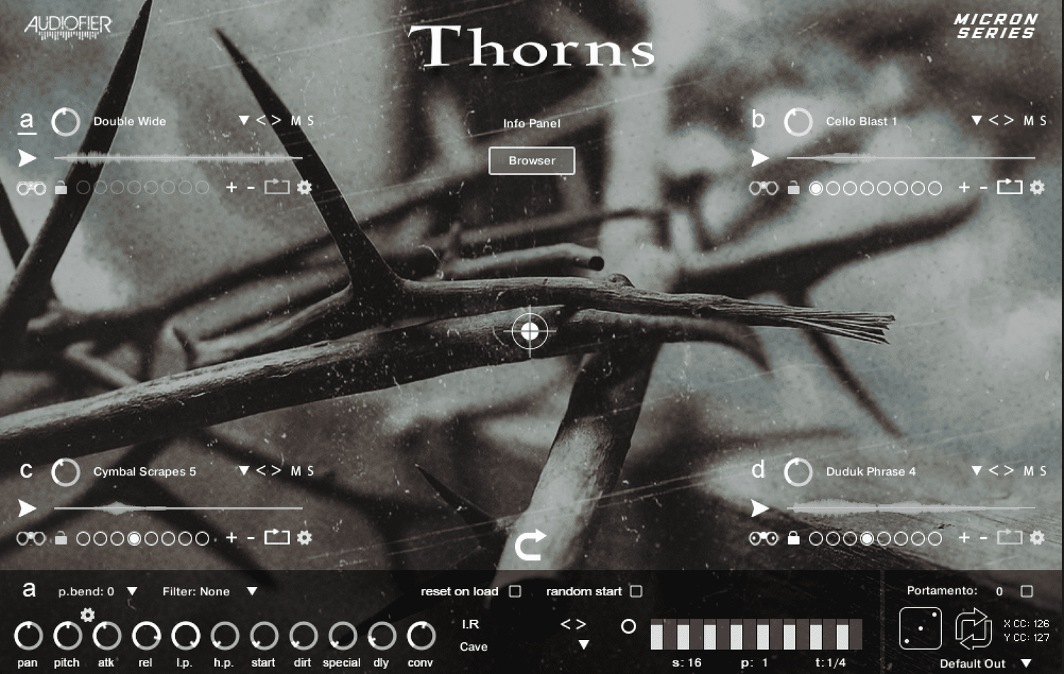 THORNS tilbyder et 4-lags instrument med et intuitivt XY pad, der gør det muligt for lyde at bevæge sig og blande sig med lethed. Inden i det findes omhyggeligt udvalgte kilder, der kan formes til atmosfærer af dybde og stilhed. Hvert lag kan bære sorgfulde toner eller stille håb, og sammen danner de lydlandskaber, der ånder og udfolder sig. I stedet for at overmande, inviterer instrumentet dig til at udforske subtile detaljer, til at skabe rum, der er kontemplative, fremkaldende og varige.