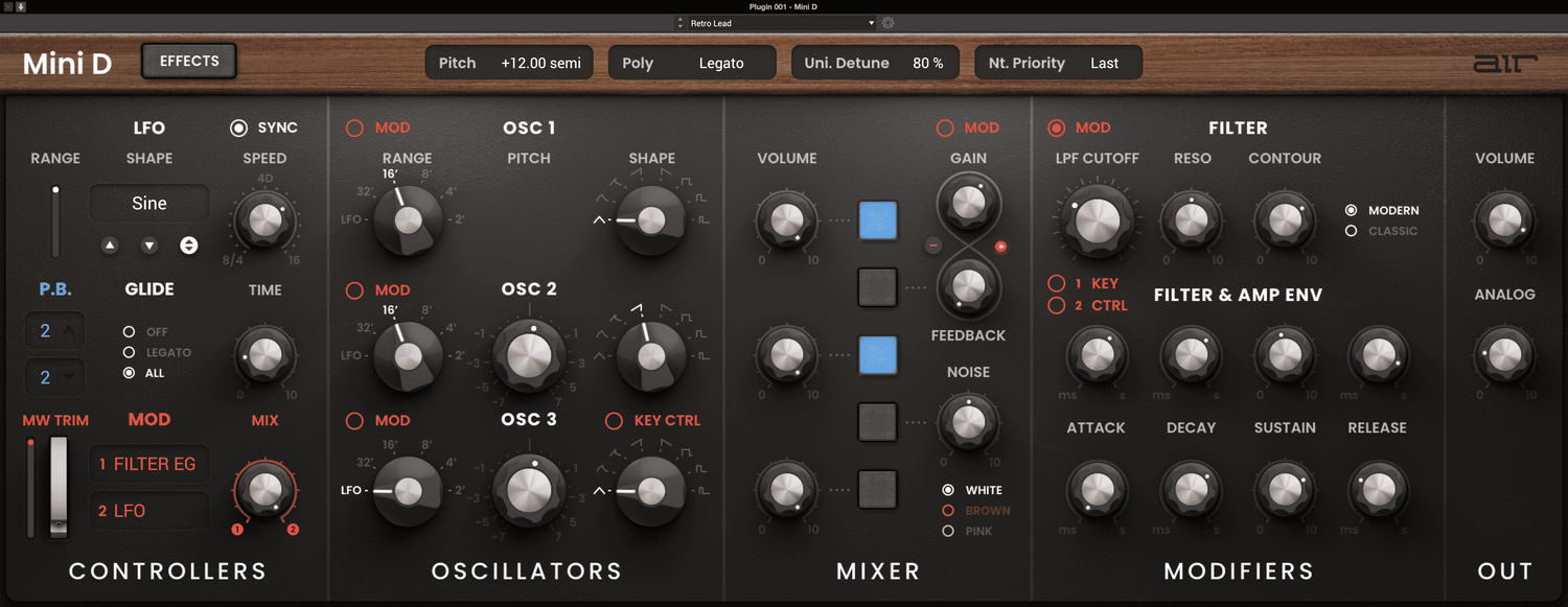 Bygget af det verdensberømte Air Music team i Tyskland, vil presets i Mini D inspirere dig! Med over ti kategorier, der spænder fra bas til leads til synth FX, vil du helt sikkert finde lyde, der kan bruges med det samme i dit næste nummer eller som gode udgangspunkt for at eksperimentere og tilpasse dine egne toner.
