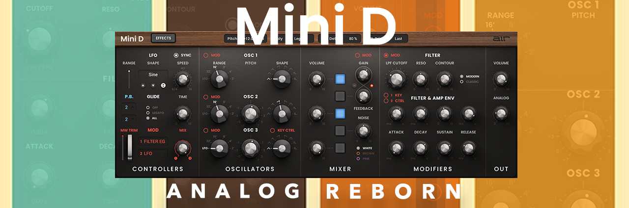 Mini D åbner en verden af fantastiske lyde baseret på en af de mest ikoniske synths, der nogensinde er lavet – men med opdaterede funktioner, der giver moderne fleksibilitet og nye muligheder. Alt, hvad du forventer, er her – klassiske varme og punchy lyde, præsenteret med et imponerende interface og 300 moderne og retro presets, der tilføjer ny sonic klasse til dine produktioner.