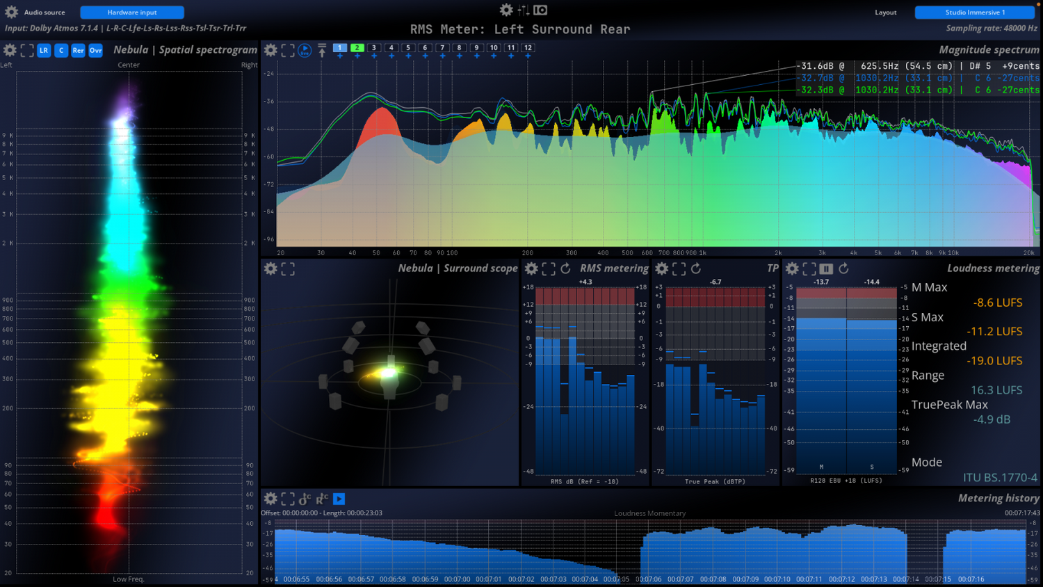 Den unikke FLUX:: Nebula visualiserer det rumlige lydfelt i et scope spektrogram til multikanalanalyse i op til 24 kanaler.