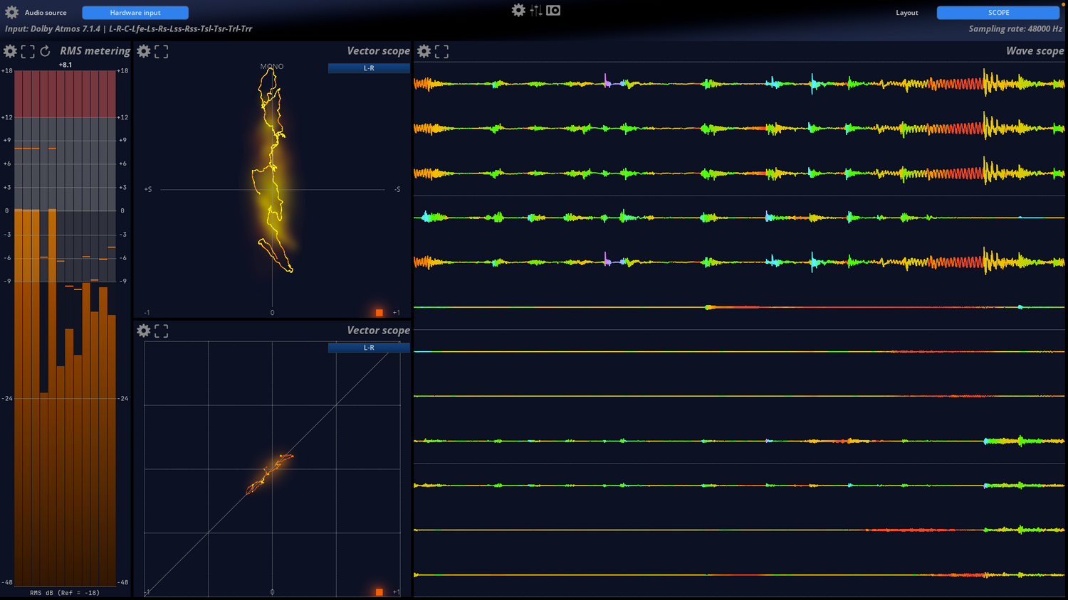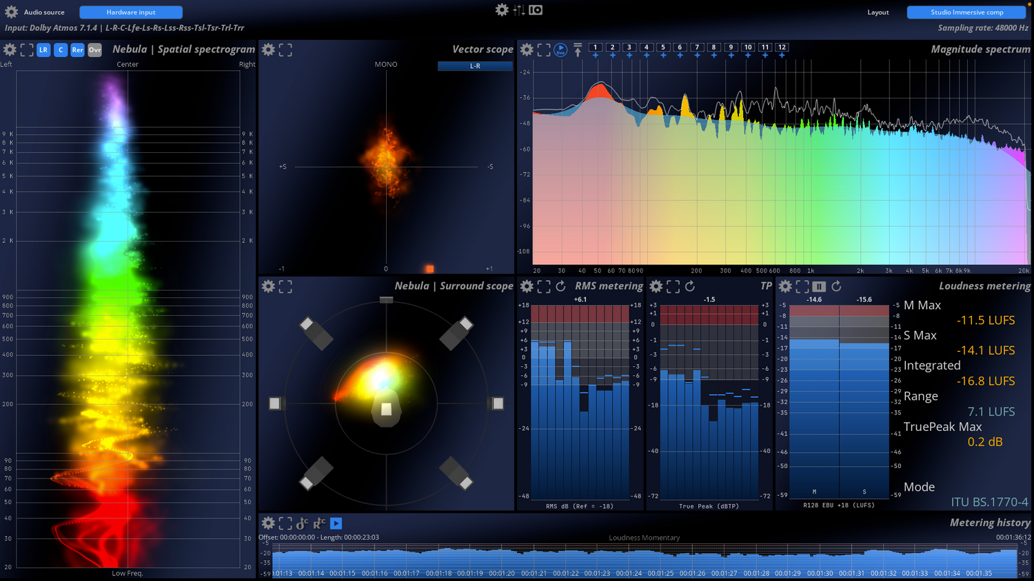 Mix med selvtillid og vær i fuld kontrol i et reaktivt, realtidsmiljø. MiRA Studio er den første immersive audio analyzer med support for op til 24 kanaler til workflows i Dolby® Atmos, Auro3D, NHK 22.2 og andre multikanalsformater og højttalerarrangementer, med tilpassede layouts og arbejdsområder skræddersyet til dine specifikke behov.