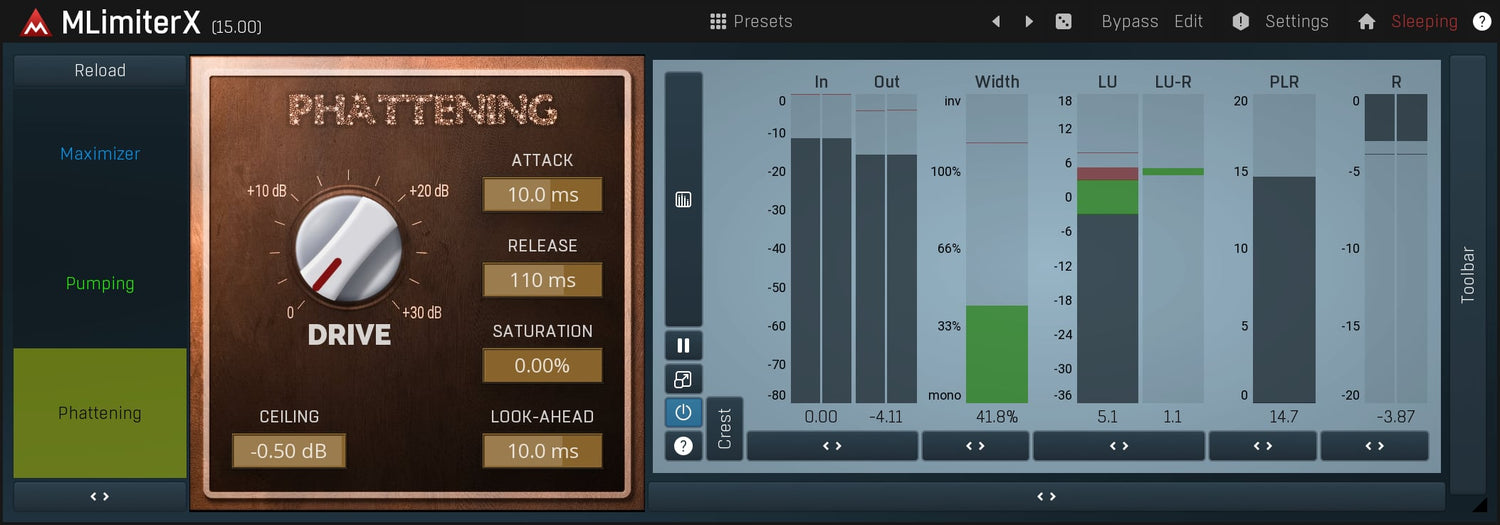 Hvis du leder efter de store kanoner, der kan få dine optagelser til at lyde højere, samtidig med at de bevarer gennemsigtigheden, men som også kan tilføje karakter, hvis du ønsker det, så er MLimiterX våbnet for dig!