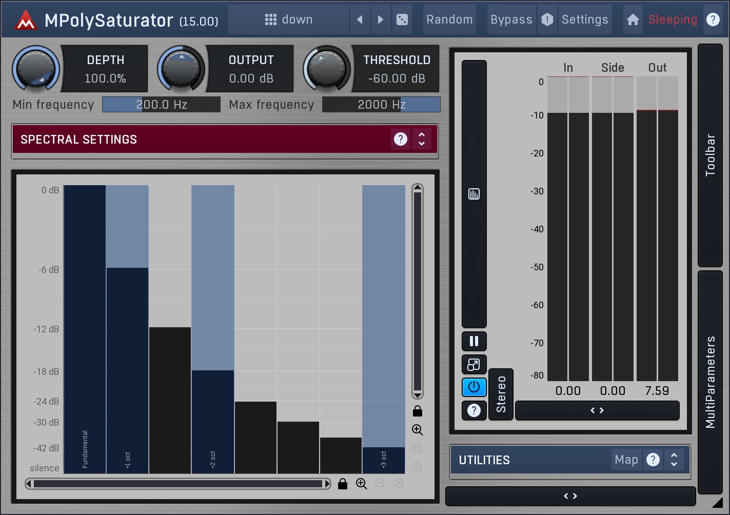 MPolySaturator er et unikt spectral saturation plugin, som genererer harmoniske for hver enkelt frekvens i dit signal, hvilket får resultaterne til at lyde rigere.