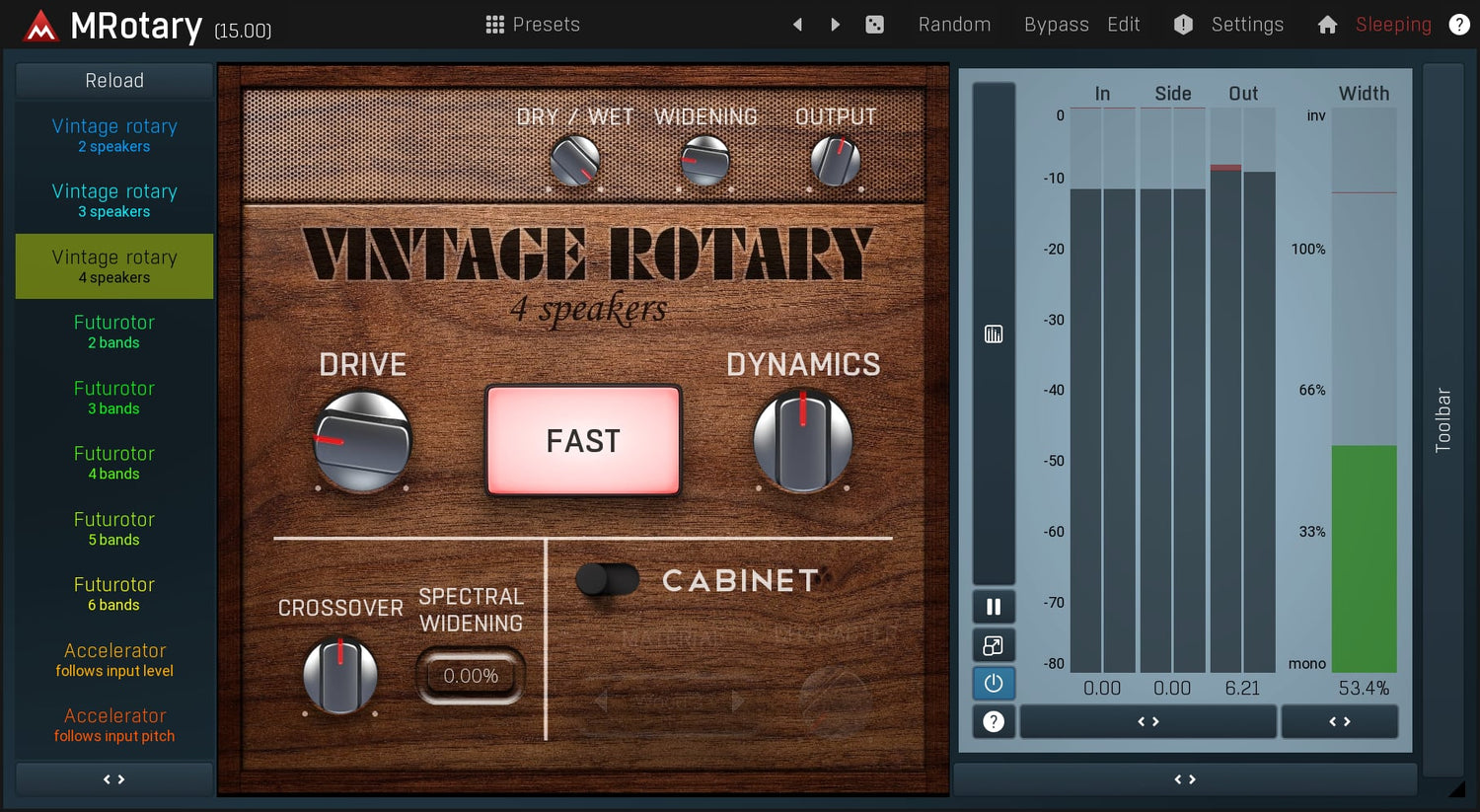 MRotary er den ultimative rotary simulator, som kan levere ikke kun den fantastiske vintage lyd, men også futuristisk algoritmisk lyd med op til 6 højttalere ad gangen.