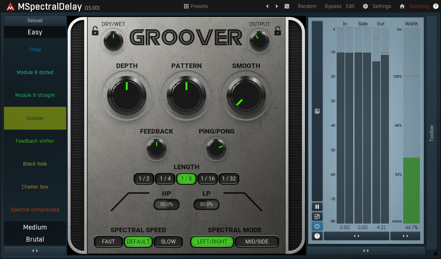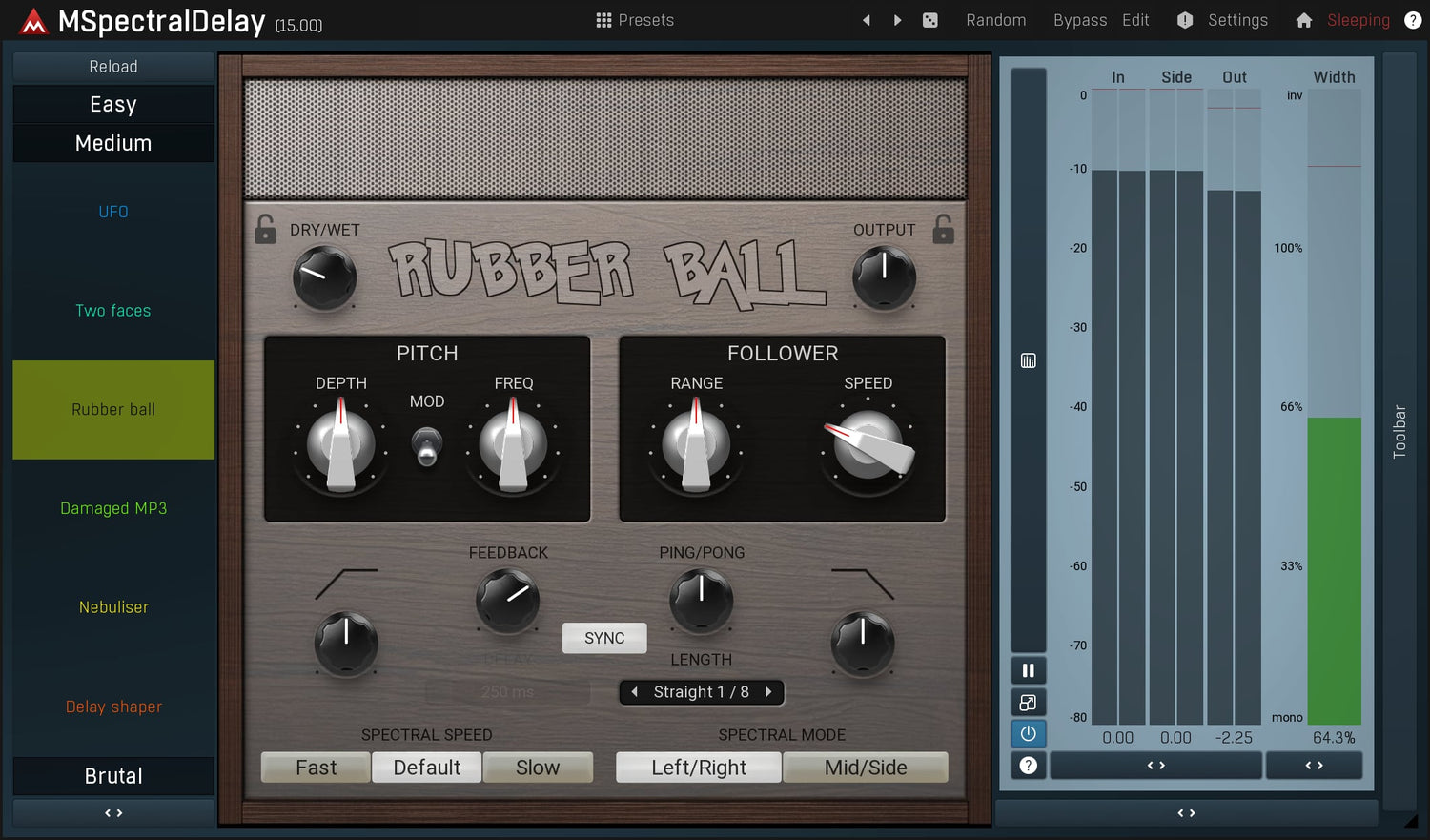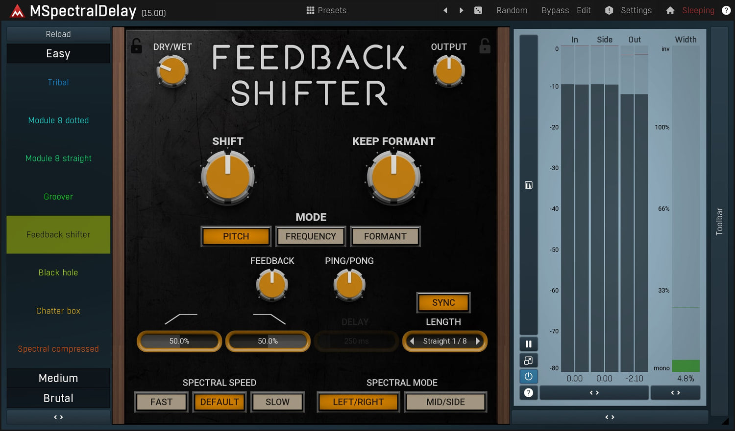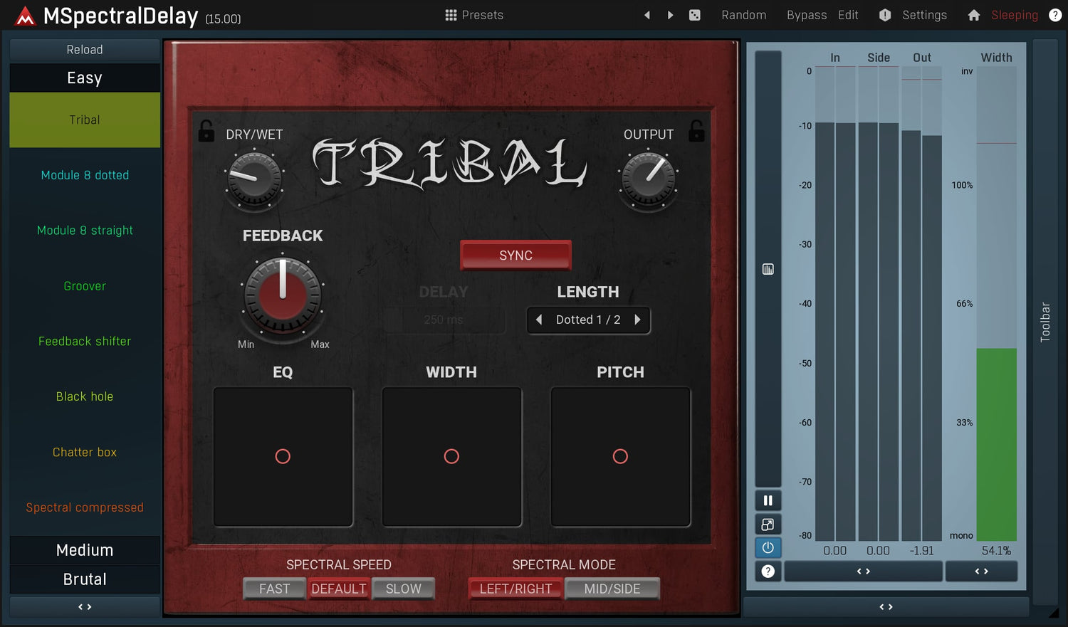MSpectralDelay er et unikt kreativt delay plugin, som arbejder i det spektrale domæne og lader dig udføre forskellige transformationer på det forsinkede signal - fra at ændre tonehøjde til vilkårligt at transformere individuelle frekvenser. Det er komplekst, men det er stadig nemt at bruge for begyndere.