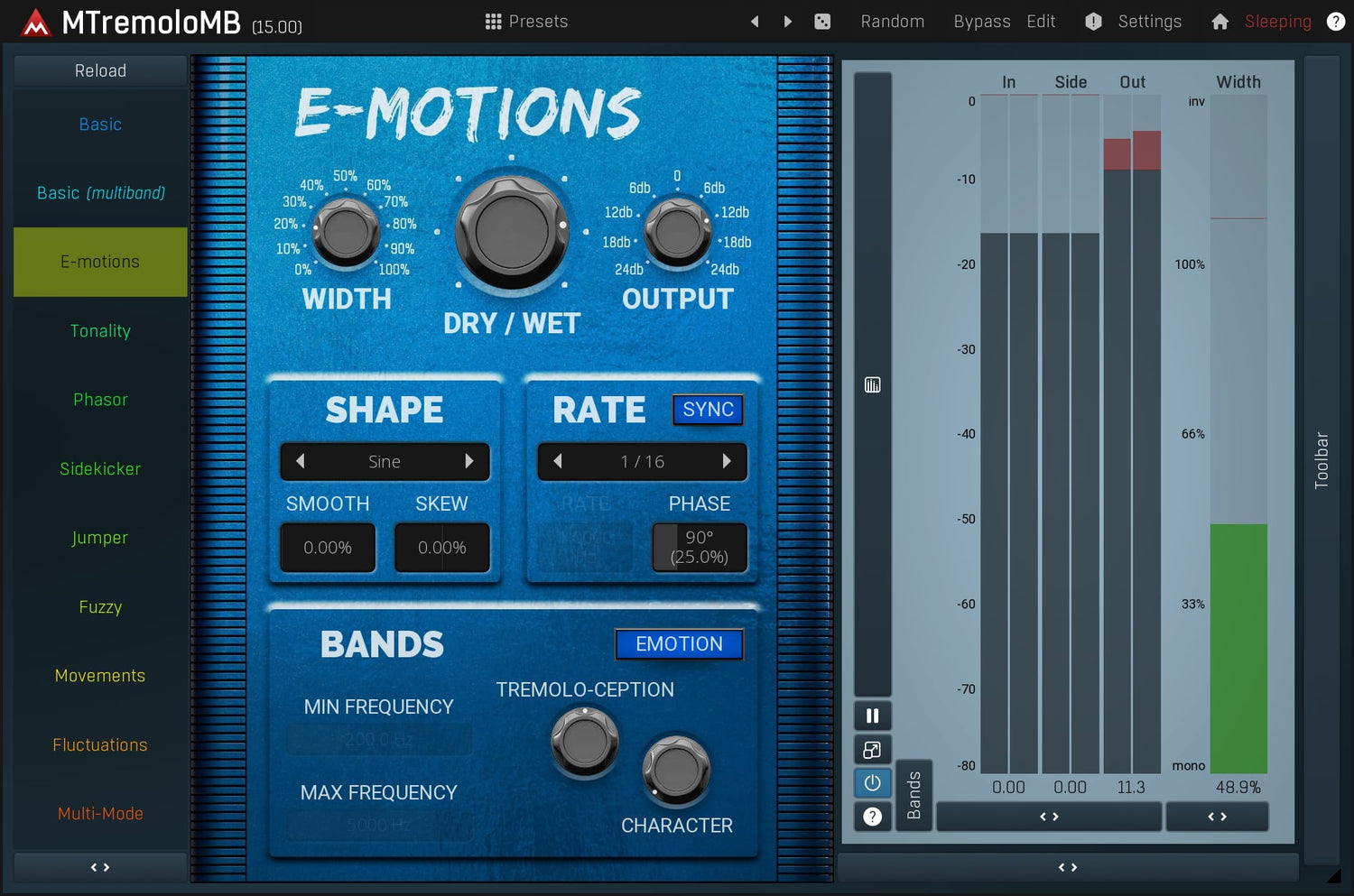 MTremoloMB, den mest kraftfulde tremolo i verden, er et essentielt værktøj for enhver lydtekniker. Uanset om du bare ønsker at tilføje lidt karakter til et elektrisk klaver, skabe lidt stereo bredde, eller begynde at være virkelig kreativ, vil MTremoloMB levere fantastiske resultater på ingen tid.