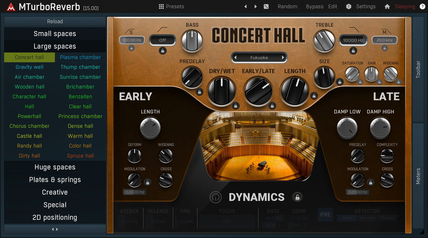 MTurboReverb er en revolutionerende algoritmisk reverb, som indeholder omkring 100 fremragende lyttende reverberationer i et enkelt plugin og giver dig endda mulighed for at designe dine egne reverb-algoritmer.