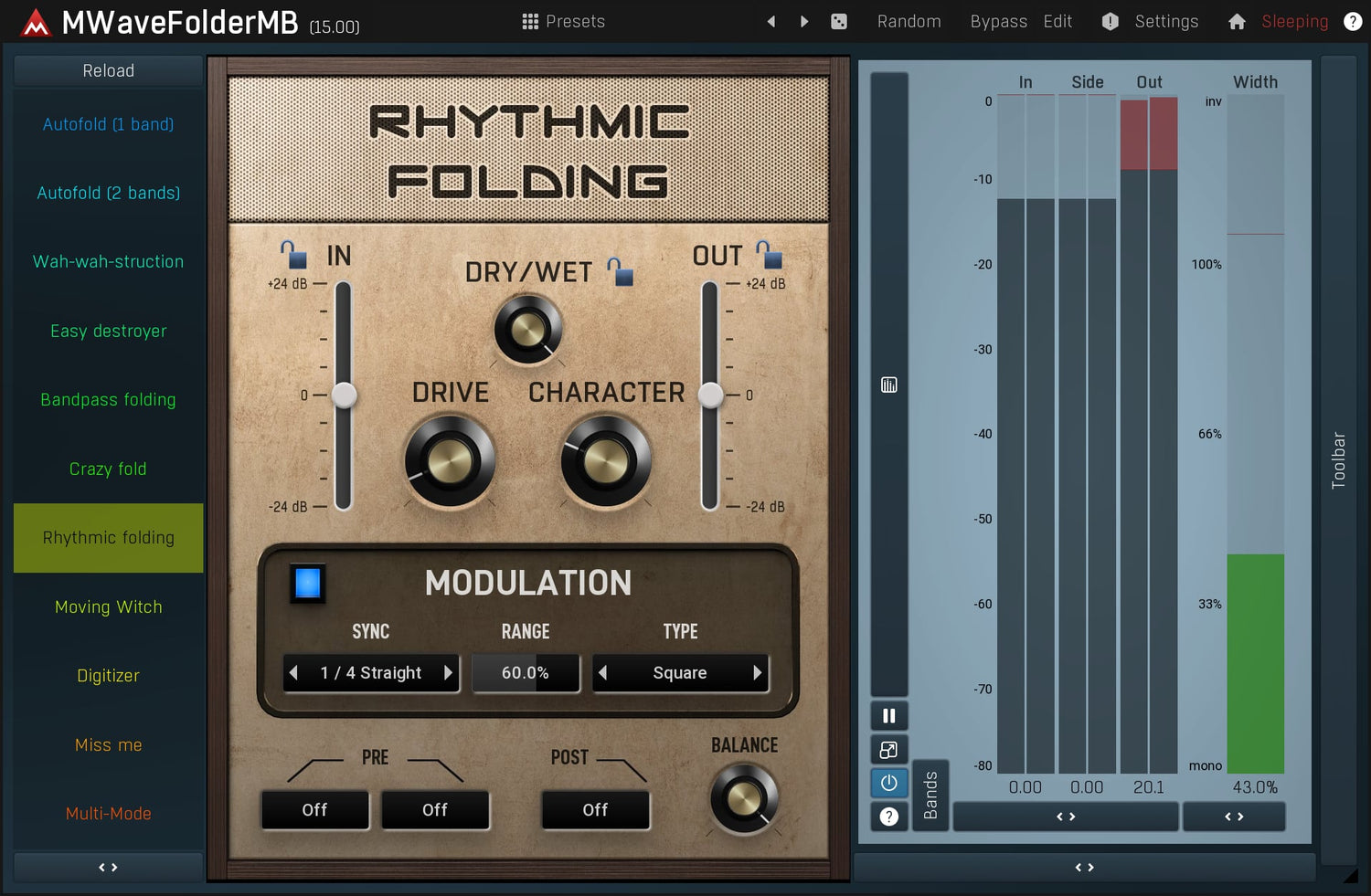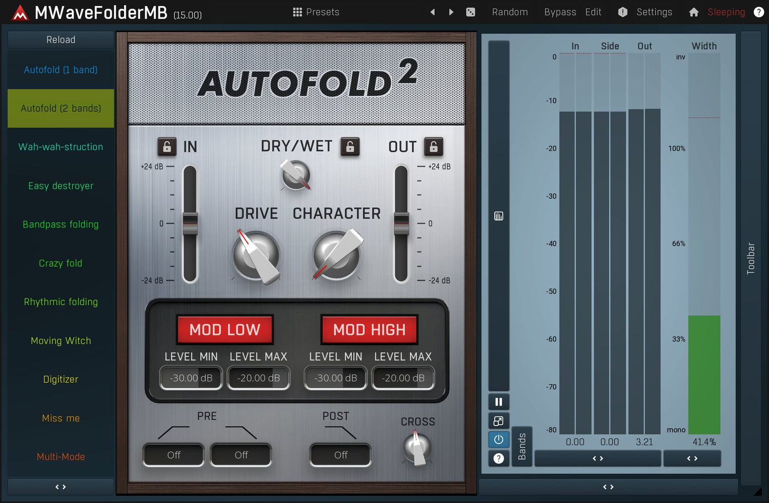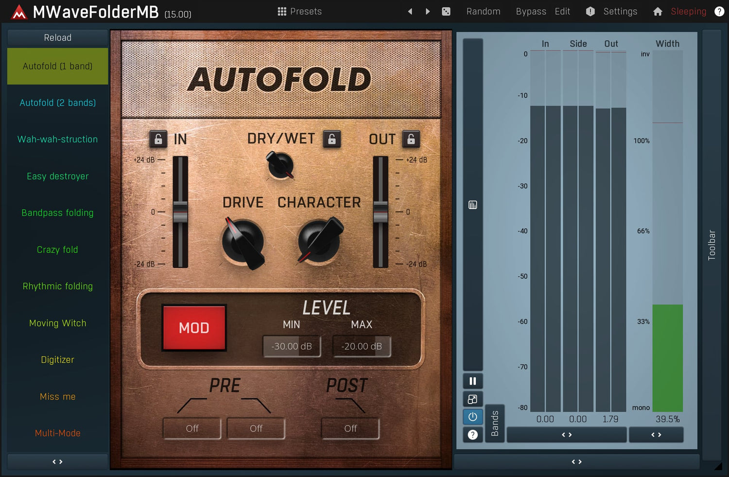 MMultiBandWaveFolder er et kraftfuldt distortion-modul, inspireret af analog teknologi, taget til et helt nyt niveau ved hjælp af digital behandling.