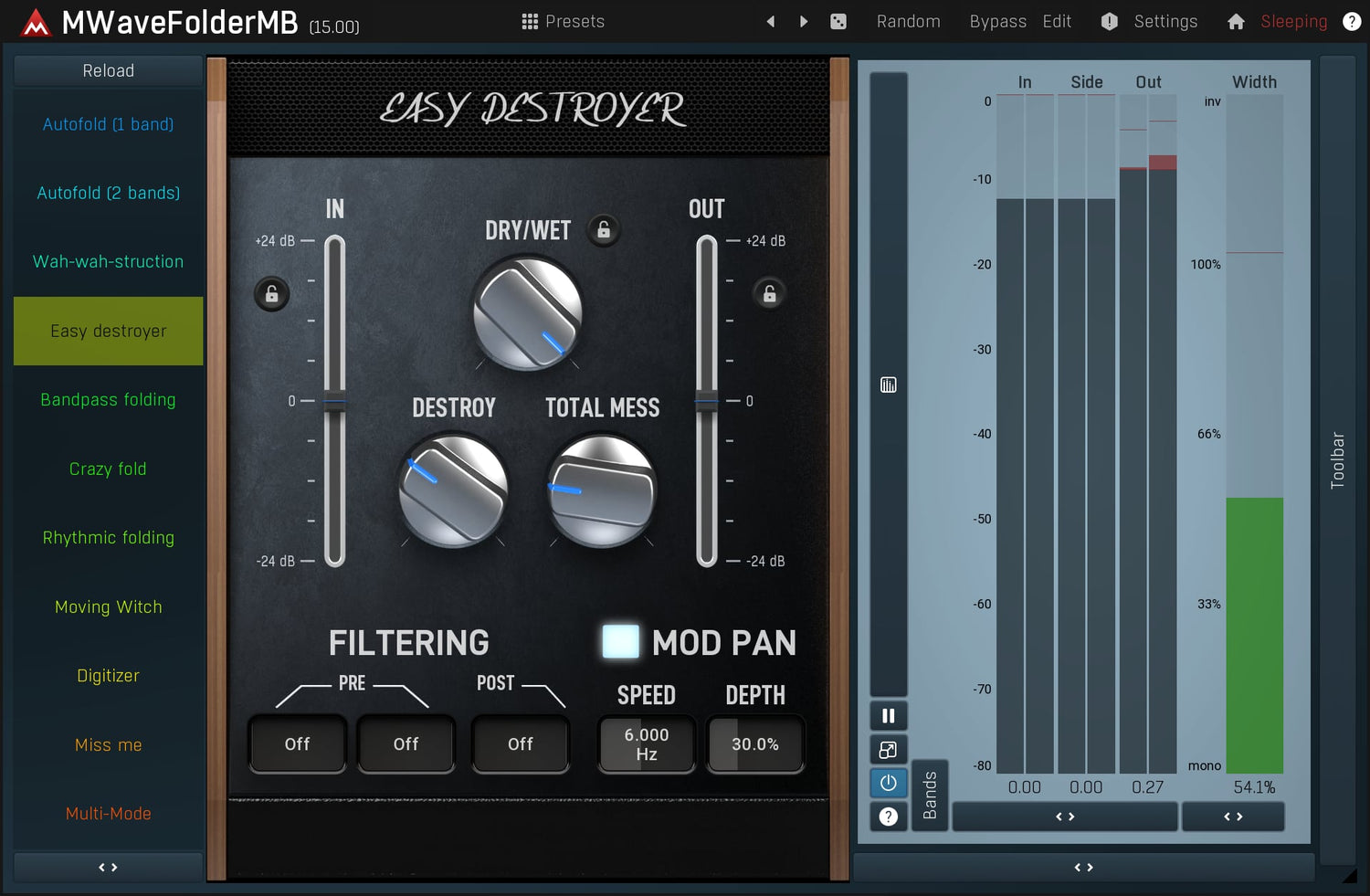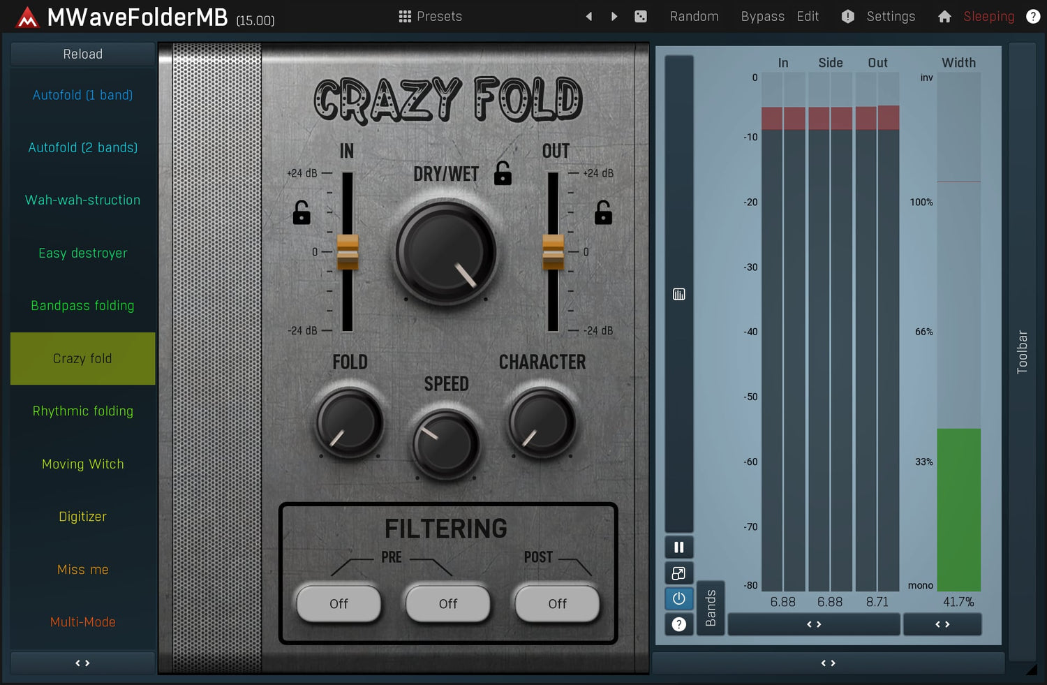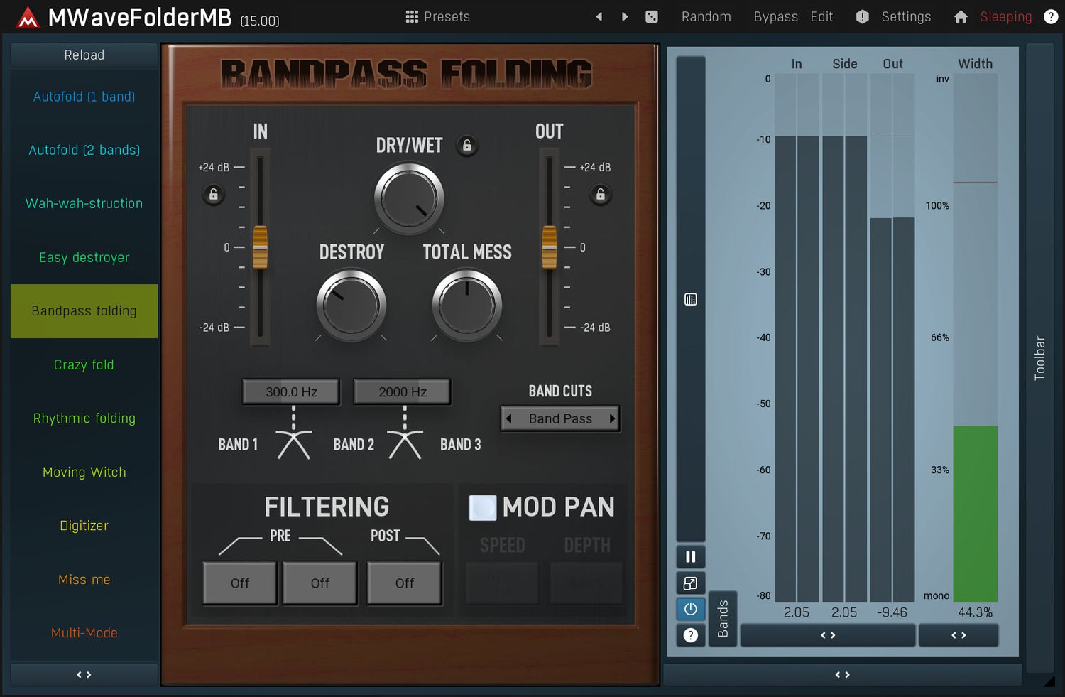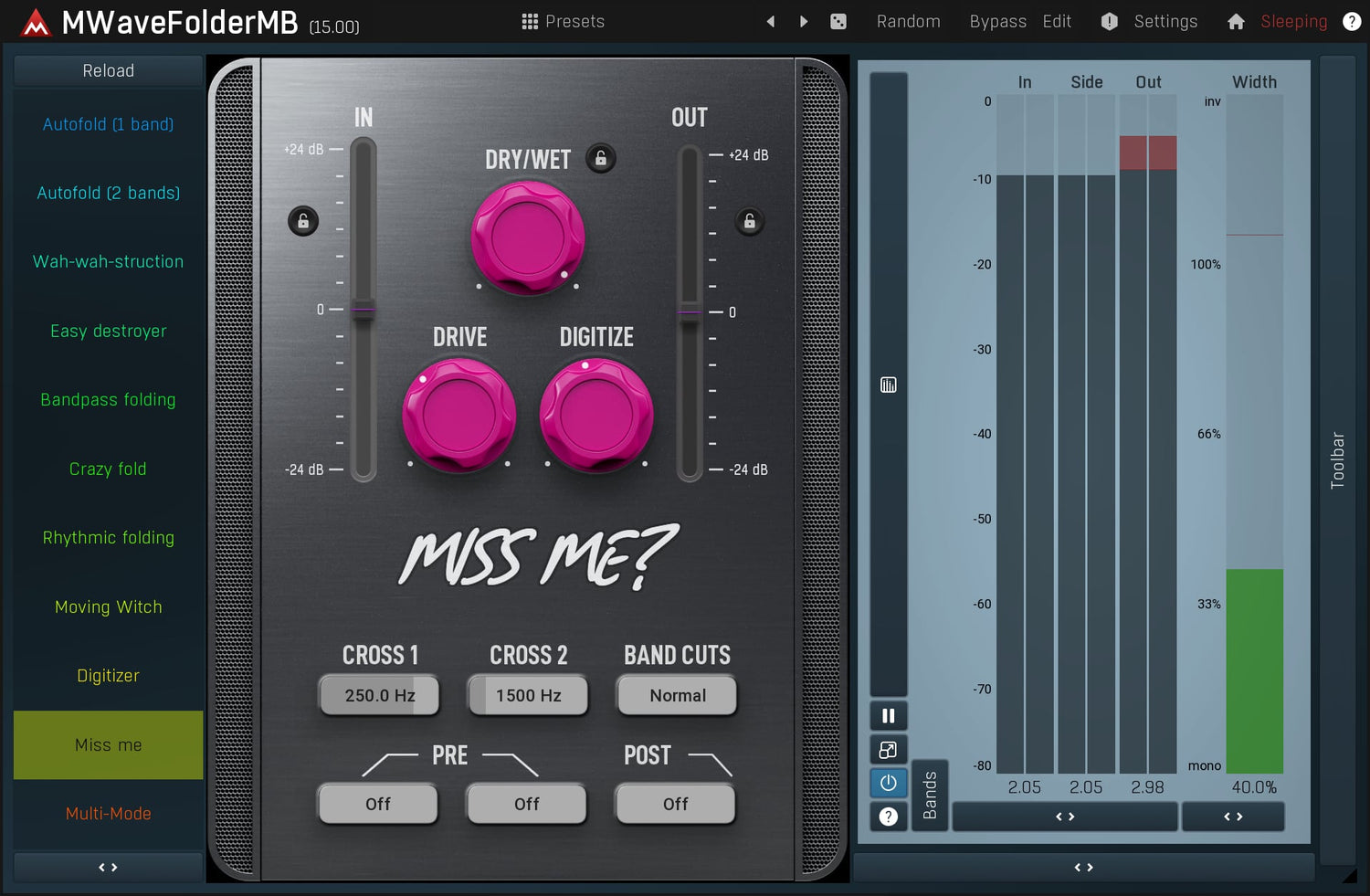 MMultiBandWaveFolder er et kraftfuldt distortion-modul, inspireret af analog teknologi, taget til et helt nyt niveau ved hjælp af digital behandling.