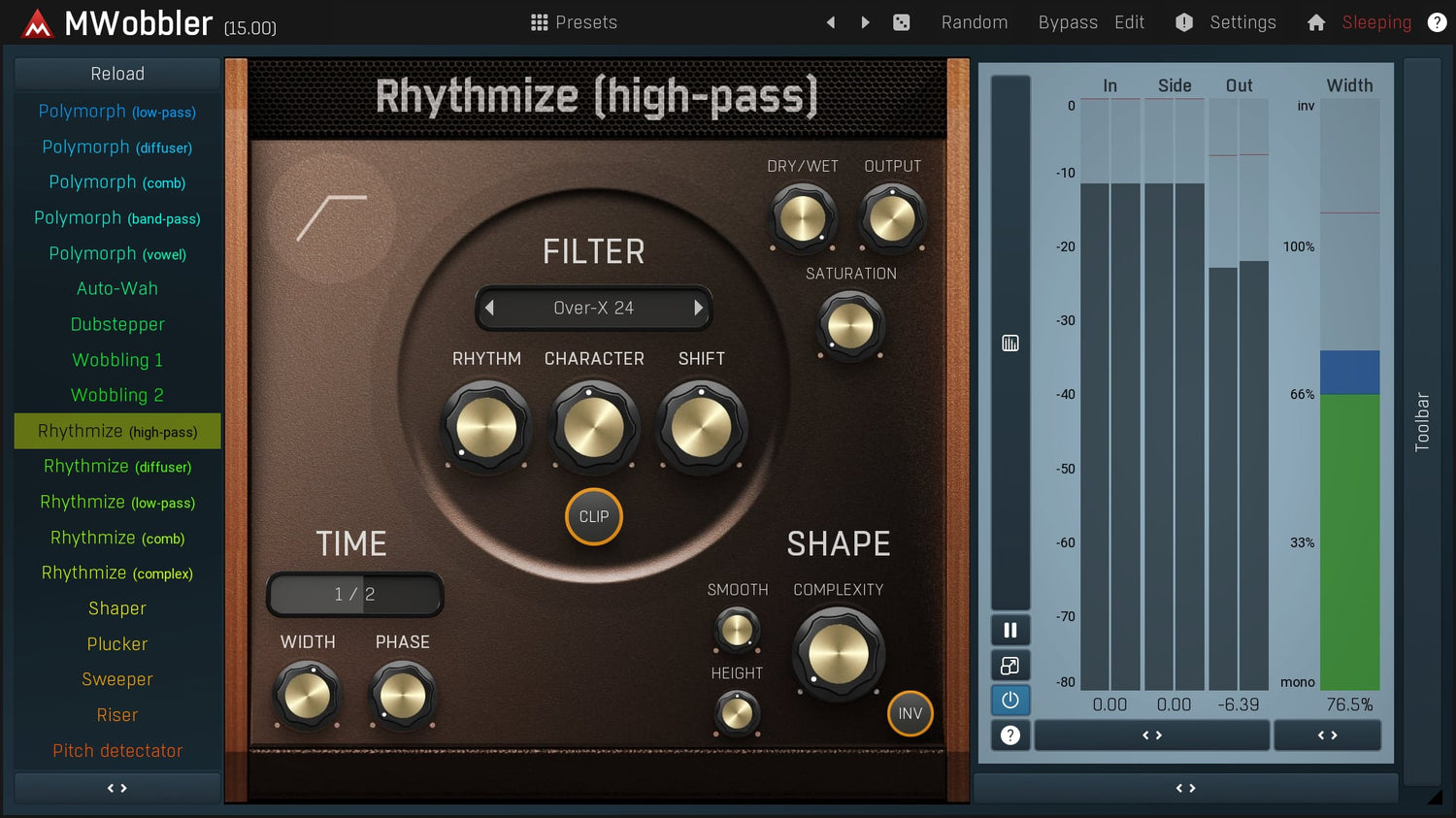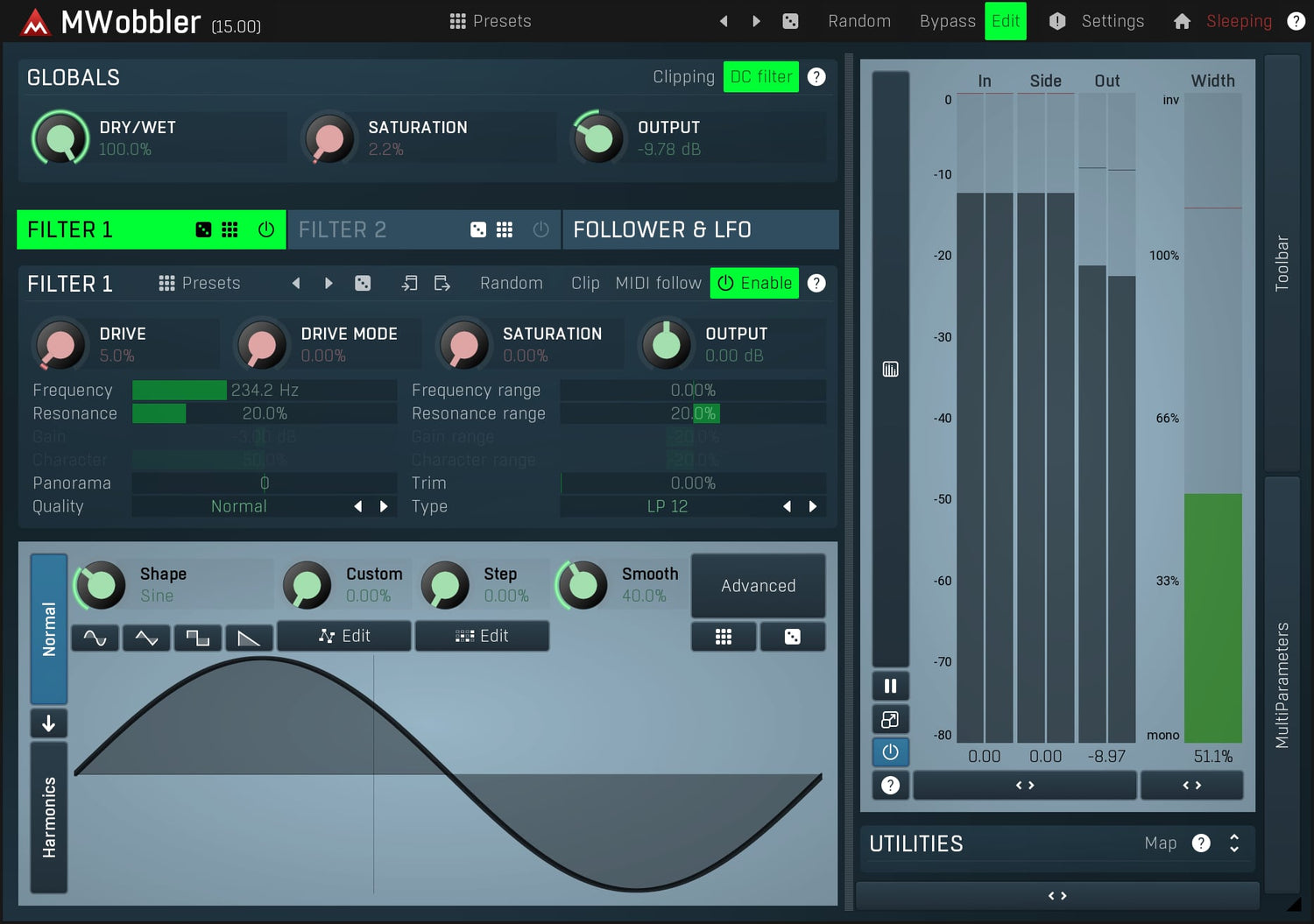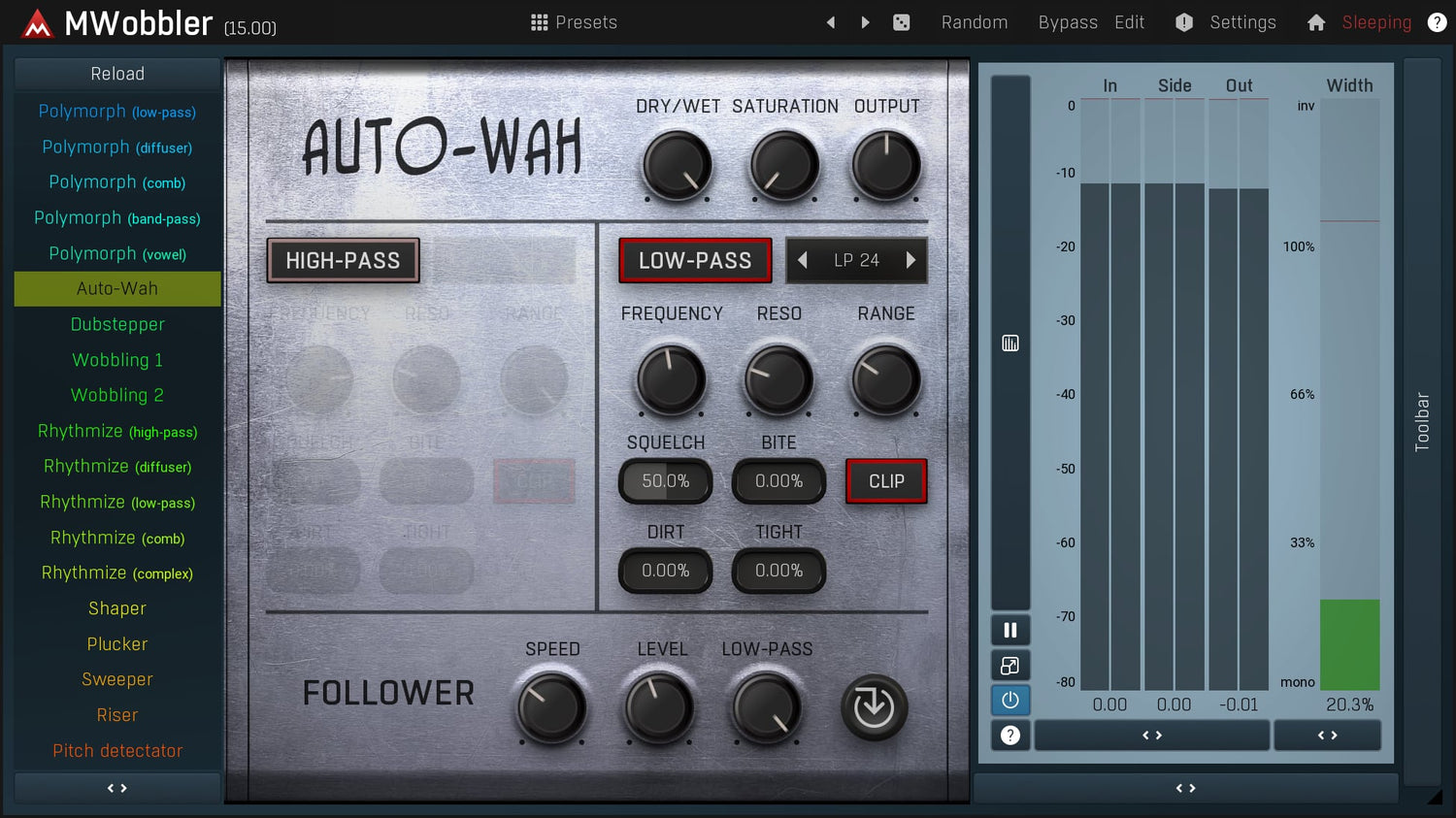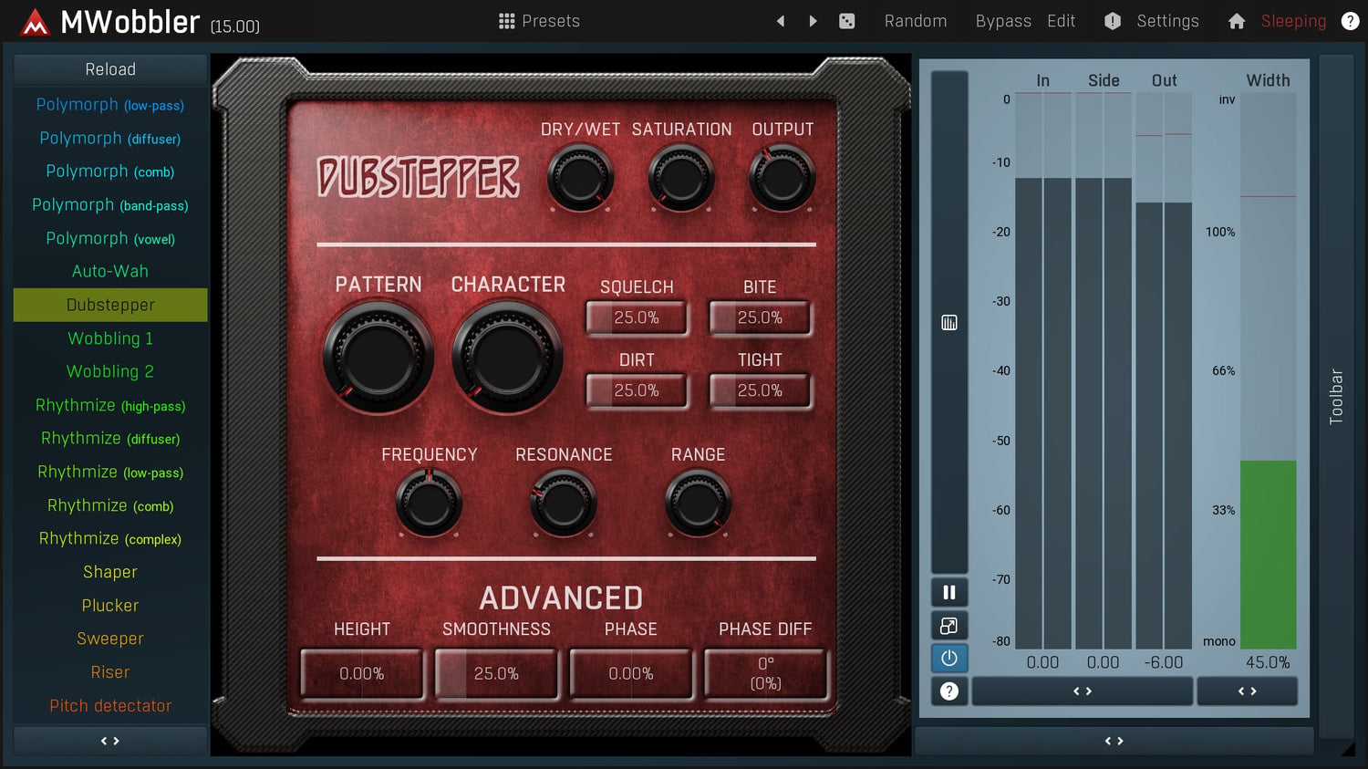 MWobbler er et unikt distorting filter, der oprindeligt blev designet til at producere dubstep wobbling basses, men det viser sig at være et fantastisk multipurpose filter til næsten ethvert lydmateriale fra rytmiske pads, rotary organs til tromledrevne basses...