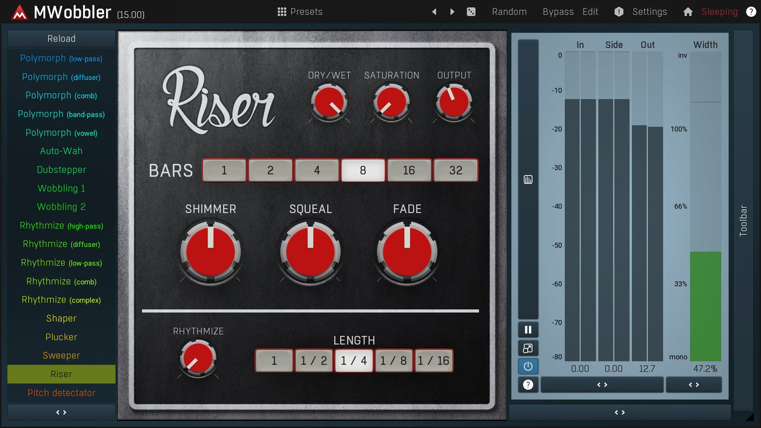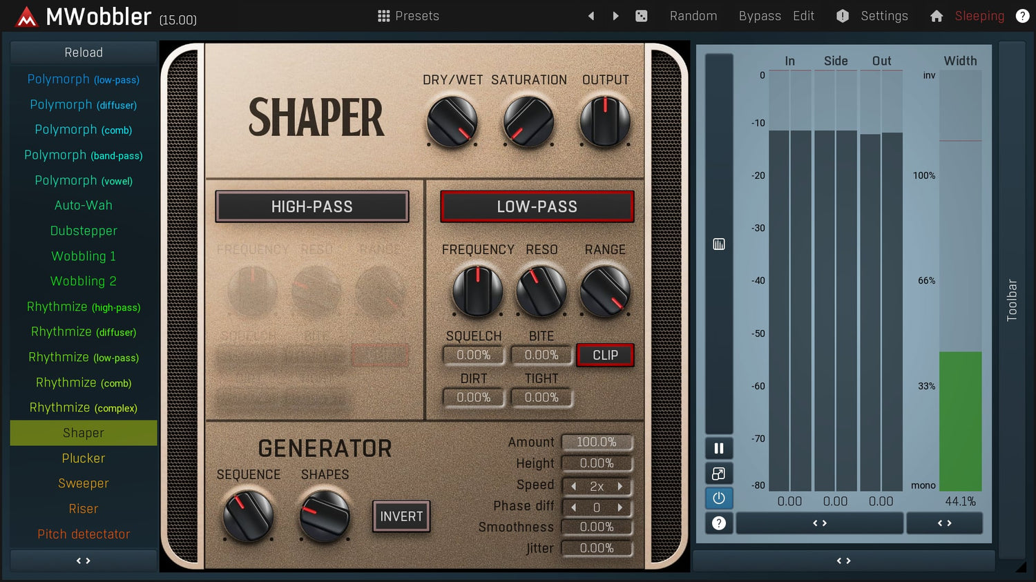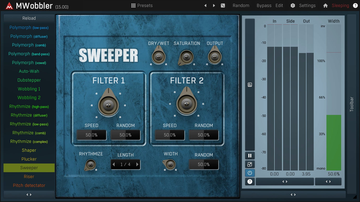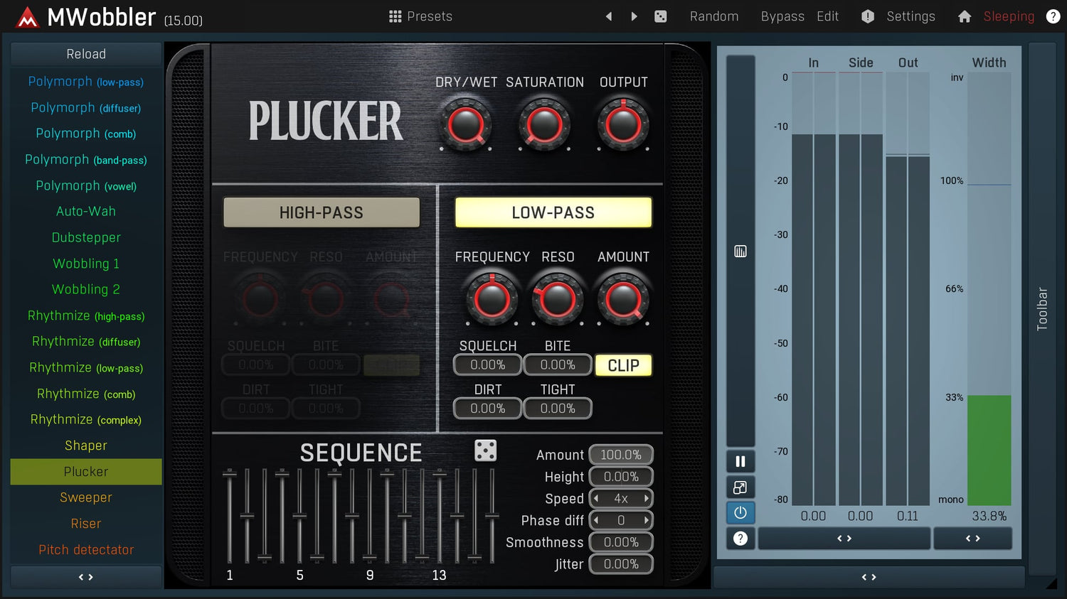 MWobbler er et unikt distorting filter, der oprindeligt blev designet til at producere dubstep wobbling basses, men det viser sig at være et fantastisk multipurpose filter til næsten ethvert lydmateriale fra rytmiske pads, rotary organs til tromledrevne basses...