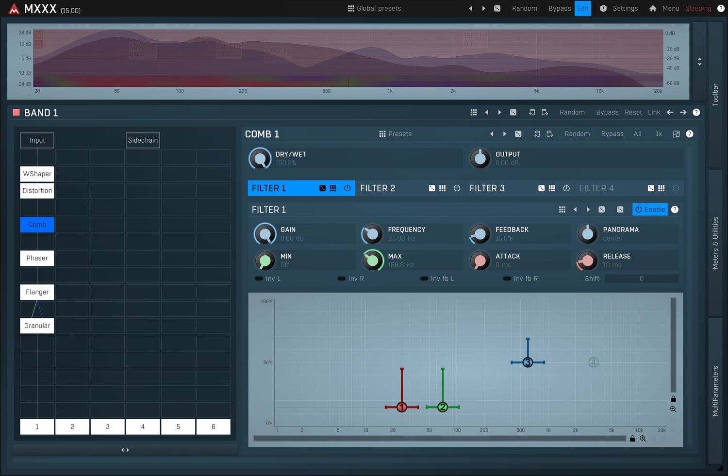 MXXX er den ultimative effekt. Det er et modulært monster, der indeholder alle vores effekter i et simpelt interface med en automatisk routing matrix, super-alsidige modulators og meget mere.