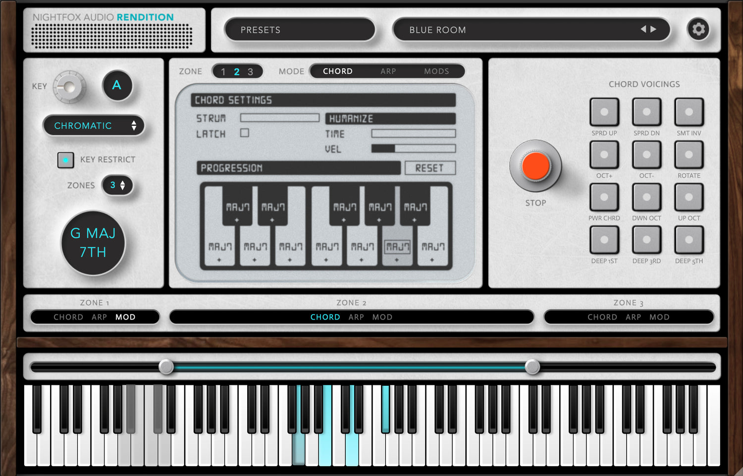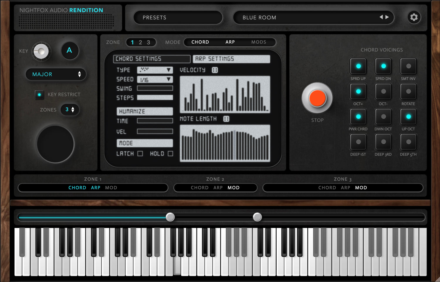 - Flexible zone stacking: Arpeggiator and Chord modes can be combined; Normal and Modifier are exclusive