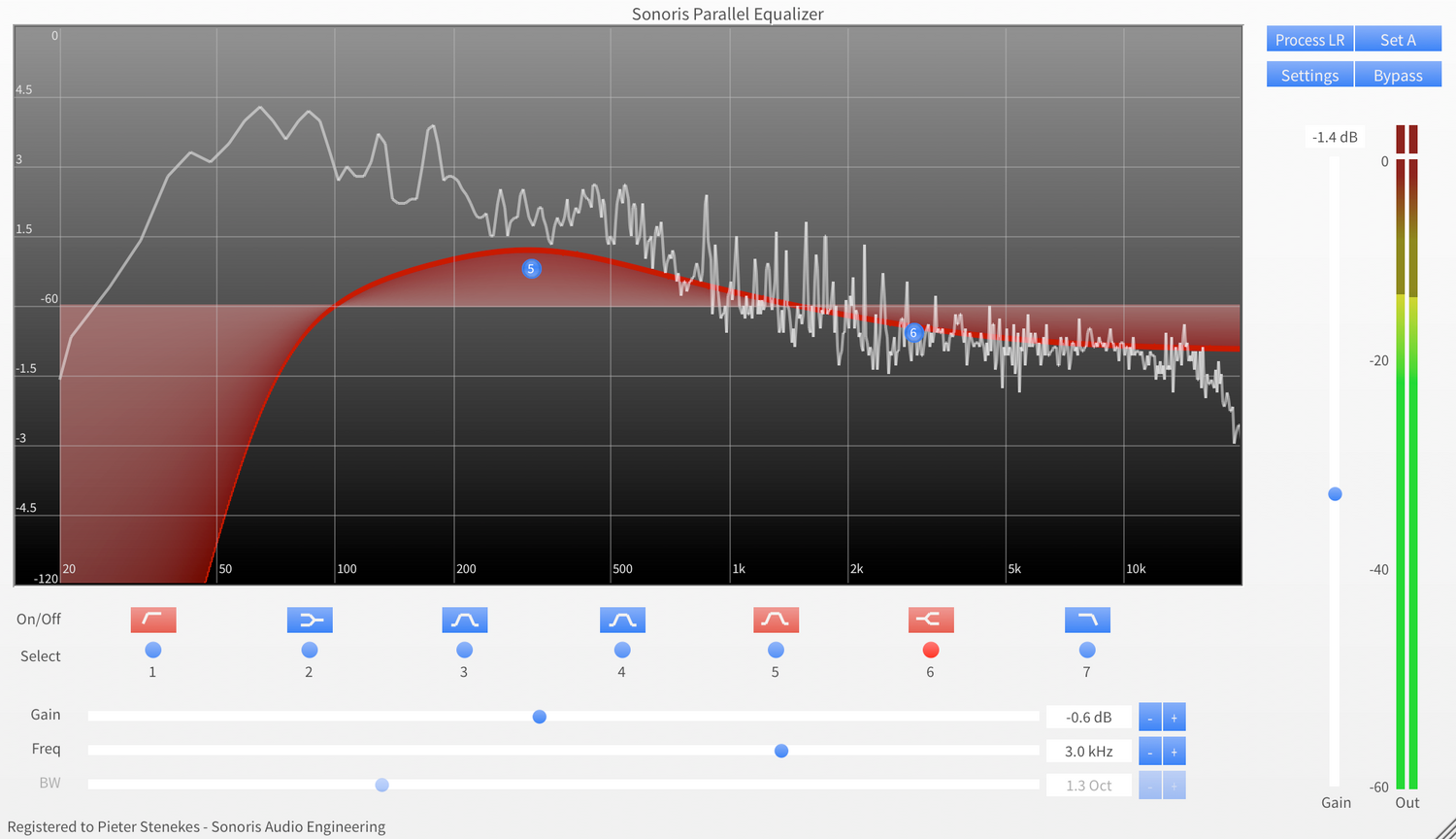 Sonoris Parallel Equalizer (SPEQ) er en minimum fase parametrisk equalizer i VST, VST3, AU, AAX og RTAS format til Windows og Mac. Pluginnet er velegnet til mixing og især mastering. Det har faste filtertyper på hver bande, og bande 2 til 6 er forbundet parallelt. Filtrene er bygget i en feedback/feedforward måde for at give skæring og boost, ligesom i analoge grafiske equalizere. Bande 3 til 5 er konstant-Q klokker, mens 2 og 6 er hylder. Bande 1 og 7 er lav/høj skæringer og er forbundet i serie med resten.