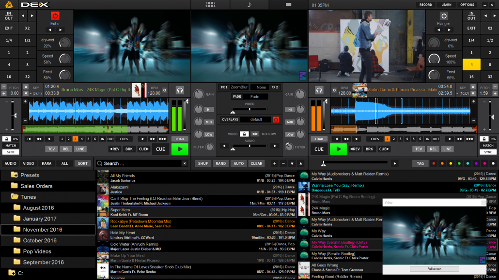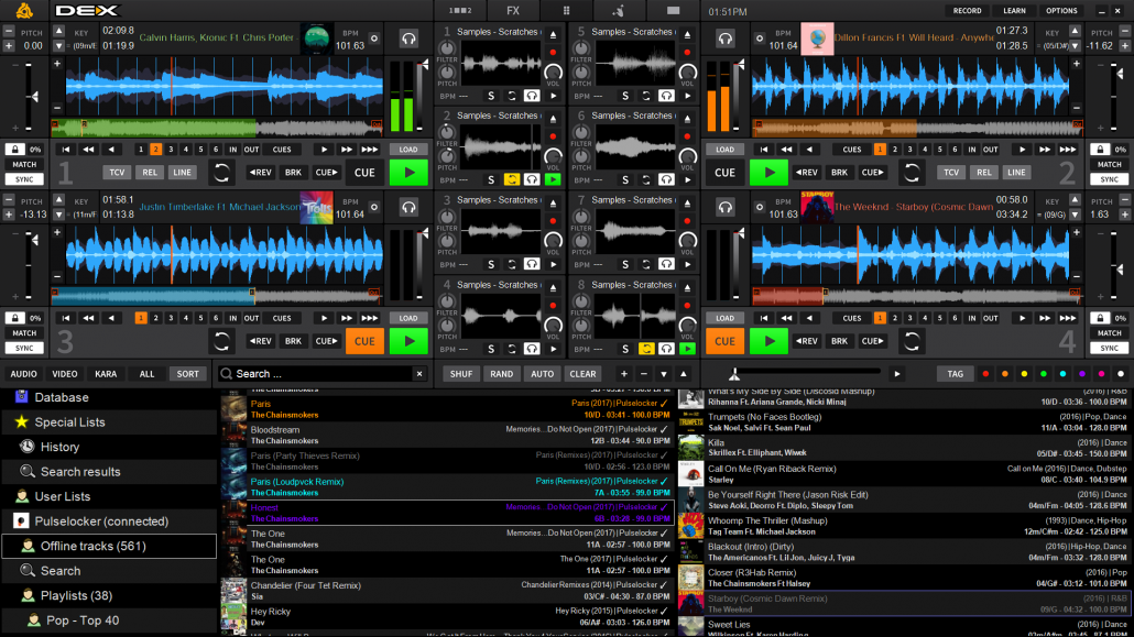 DEX 3 er professionel DJ-software til MAC og Windows, der giver dig mulighed for at gå langt ud over simpel DJing. Den mest alsidige alt-i-en DJ-software, der findes, gør DEX 3 det muligt for dig intuitivt at blande musik, musikvideoer og være vært for karaoke med præcision. Hvorfor nøjes med et produkt, der kun har én funktion, eller bruge flere produkter? DEX 3 er den eneste DJ-software med alle de funktioner, du har brug for, for at gøre enhver optræden til en total succes. Med vores beat-grid-baserede automatiske beatmixing og toneartsdetektion er det nemt at blande numre, hvilket giver dig mulighed for at fokusere på de andre aspekter af dit mix. Dit publikum vil nyde overlegen lydkvalitet, der er muliggjort af DEX 3’s brancheførende tilpassede lydmotor, uanset om du mixer live eller bruger automix. Da DEX 3 tilbyder latency-fri afspilning og support til dagens hotteste DJ-controllere; loops, hot cues og alle afspilningsfunktioner er ultra-responsiv. DEX 3 giver dig mulighed for at skabe mixes fra dit eget musik- og musikvideobibliotek og/eller iTunes ved blot at bruge et tastatur eller mus, eller en af de 100+ understøttede DJ-controllere. Download DEX 3 i dag og sæt gang i din fantasi – DEX 3 er den totale DJ-mixsoftwareløsning. Nu med TIDAL Streaming Support!
