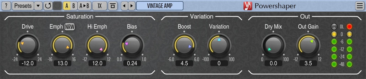 Powershaper kan bruges til at anvende saturation med gode resultater på forskellige lyde: vokaler, trommer, bas, guitarer, synths, mixes.