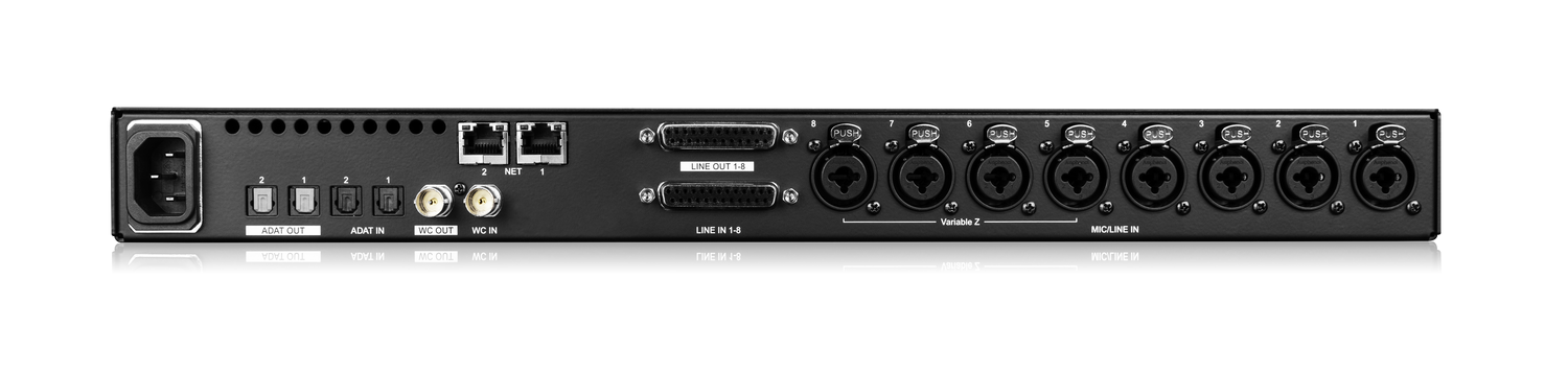 - 8 balanced XLR/TRS mic/line inputs with Variable Z (impedance) on inputs 5–8, remote controllable from Pro Tools