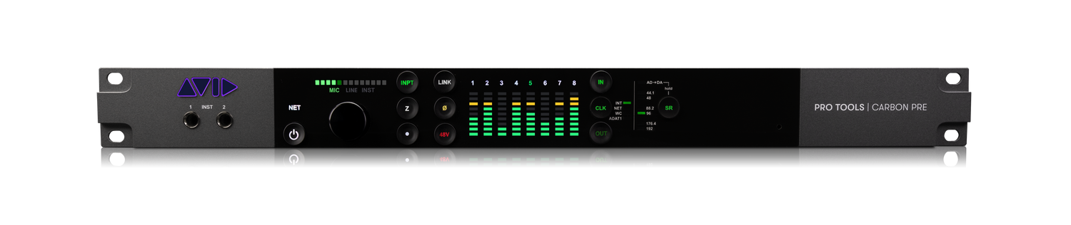 Udvid dit Pro Tools | Carbon-drevne studie op til 24 kanaler af mic/line indgange. Sonisk exceptionel, Pro Tools | Carbon Pre er en 8-kanals forforstærker, der leverer det samme transparente forforstærkerdesign og stablede ADC'er som Carbon, hvilket giver 32-bit konvertering for at fange hver sonisk detalje. Med et Carbon Expanded system kan du få adgang til Pro Tools Hybrid Engine for lav-latens inputbehandling—med fjernbetjening af forforstærkeren gennem Pro Tools. Eller brug Carbon Pre til at udvide eller erstatte forforstærkere i et Pro Tools | HD system.