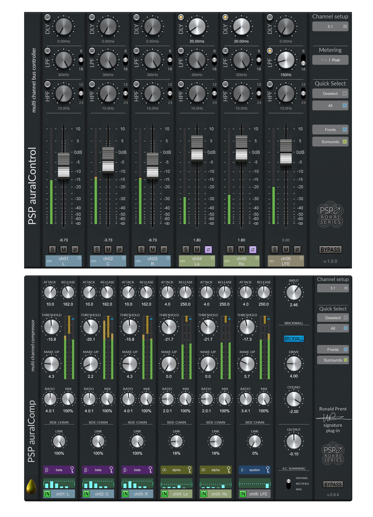 Kraftfuld: PSP auralComp er den første i en serie af plug-ins skabt i partnerskab med den anerkendte immersive audio-pioner Ronald Prent, hvis kreditter inkluderer Depeche Mode, Helloween, Manowar, Iron Maiden, Rammstein, Def Leppard, Richie Hawtin, Celine Dion, Simple Minds og mange andre. Ronald har hjulpet med at designe og tune analoge multi-kanal dynamiske processorer og mixing / mastering konsoller, og har bragt sin ekspertise til PSP til brug i PSP auralComp.