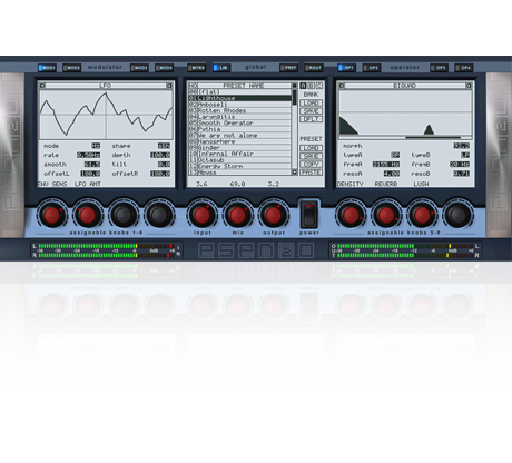 - Three displays, simplified modulation setup, keyboard and mouse wheel support for easy preset creation and tweaking