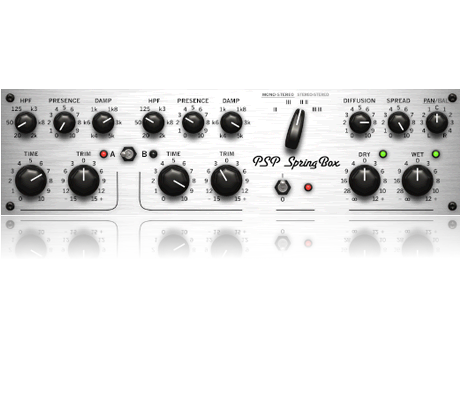 PSP SpringBox er en emulering af en hardware fjederreverb (VST, AAX og RTAS til Windows; AudioUnit, VST, AAX og RTAS til Mac OSX). Den genskaber flere funktioner, der er typiske for en fjederreverb, såsom en overbevisende “boing” på transienter og en gentagelig resonansmusikalitet med en justerbar tilstedeværelse. Der tilbydes et udvalg af konfigurationer fra to til seks fjedre i alt, samt muligheden for at indstille stereo-spredning og pan/balance, der er konfigureret til at passe til forskellige mix-opsætninger - fra en typisk guitarreverb til kreative anvendelser som en send reverb i mixet. Takket være PSP SpringBox’s to-kanals A og B indstillingsopsætning og række af presets er betjeningen hurtig og nem.