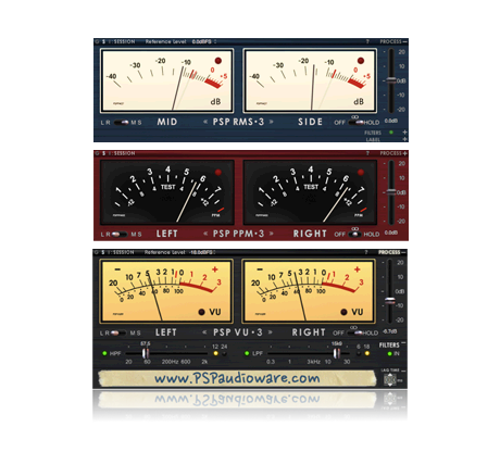 PSP TripleMeter er efterfølgeren til PSP 2Meters bundtet. Det tilbyder tre forskellige målere - VU meters, RMS meters og PPM meters - med diskrete funktioner såsom kalibrering og delte funktioner såsom trim faders, filtre og en label strip. Vores mål var at give dig mulighed for at vælge mellem forskellige audio måleværktøjer, mens du behandler lyd. Nu kan du med et enkelt klik tjekke volumen enheder (VU) målinger af et signal og sammenligne det med peak indikationer eller RMS værdier!