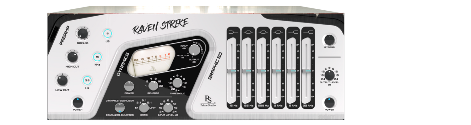 Raven Strike er et mono / stereo channel strip plugin med tre kombinerbare værktøjer, der farver lyden af dine spor.