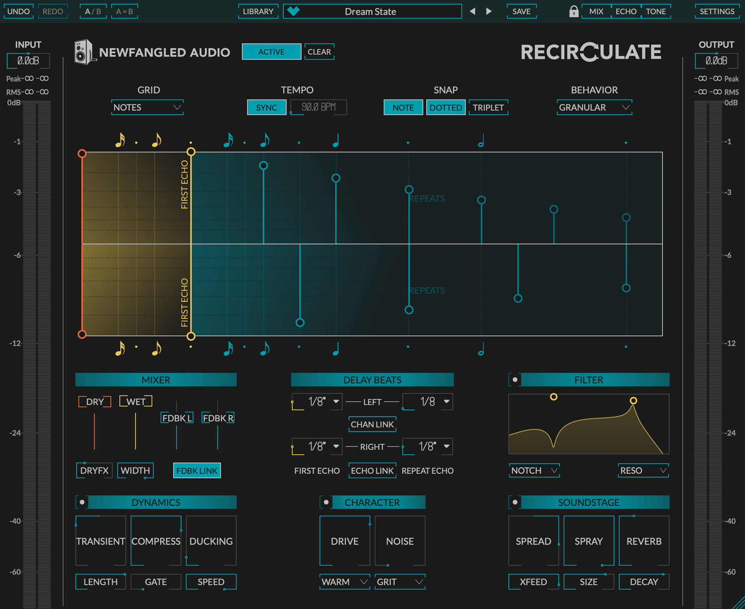 - Dry FX: Blend Recirculate's character and tone into the dry path to integrate the delay and elevate the whole performance.