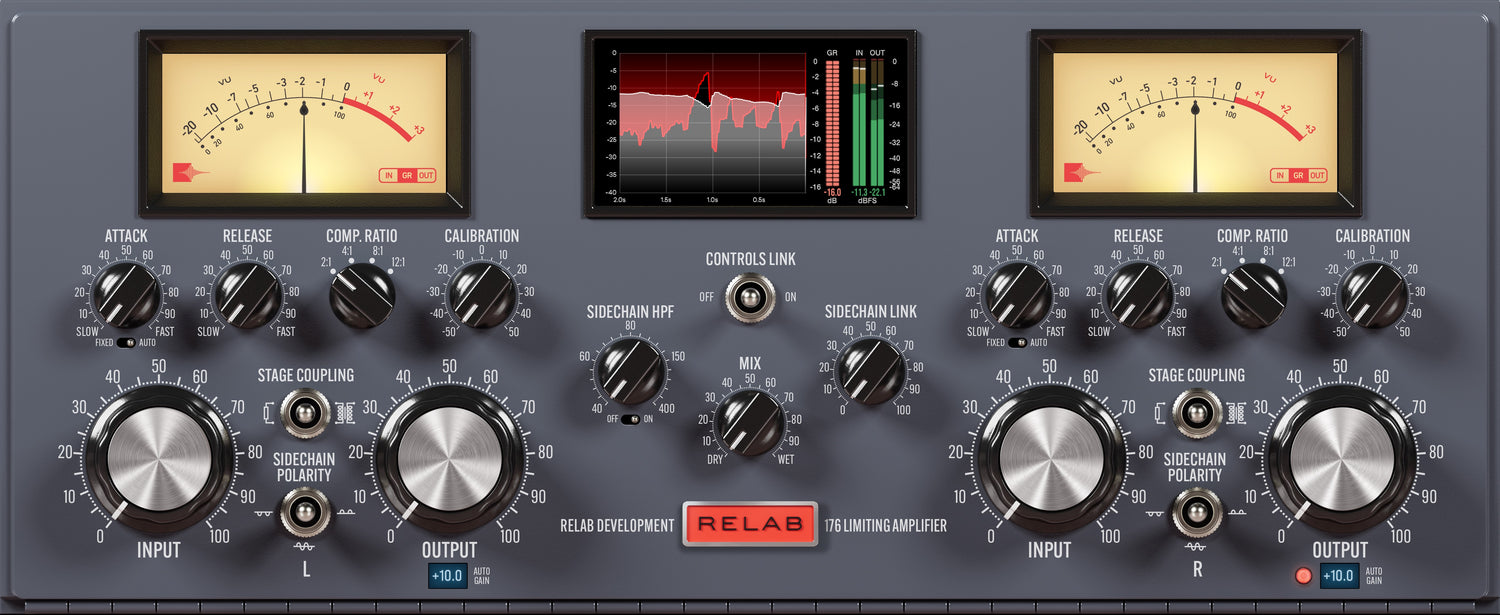 Fordi kompression i Relab 176 opstår fra et fuldt modelleret kredsløb snarere end en fast overførselskurve, er dens respons iboende musikalsk og dynamisk - timing og harmonik tilpasser sig kilden, hver ratio ændrer hældningen og knæpositionen, og den præcise signalvej, inklusive transformer kobling og rørstage interaktioner, bevares.