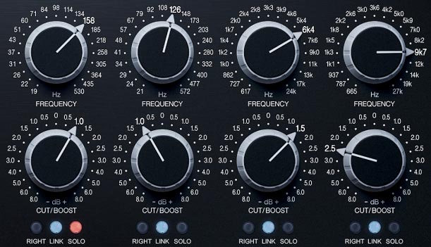 Solo-funktionen har en håndplukket fast-gain kurve for præcis og effektiv frekvensmålretning. I kombination med EQ's serielle flow kan du straks høre interaktiviteten mellem bandene.