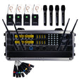 - Dette system har 4 headsets og 4 håndholdte mikrofoner i en praktisk kasse. Lige til at åbne og tillsutte mixer.