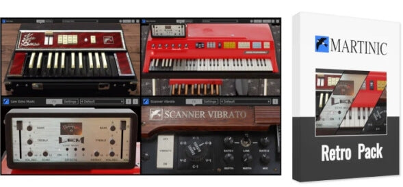 Retro Pack tilbyder særlige pakkepriser for de originale 4 vintage instrument- og fx plugins, der tilbydes af Martinic.