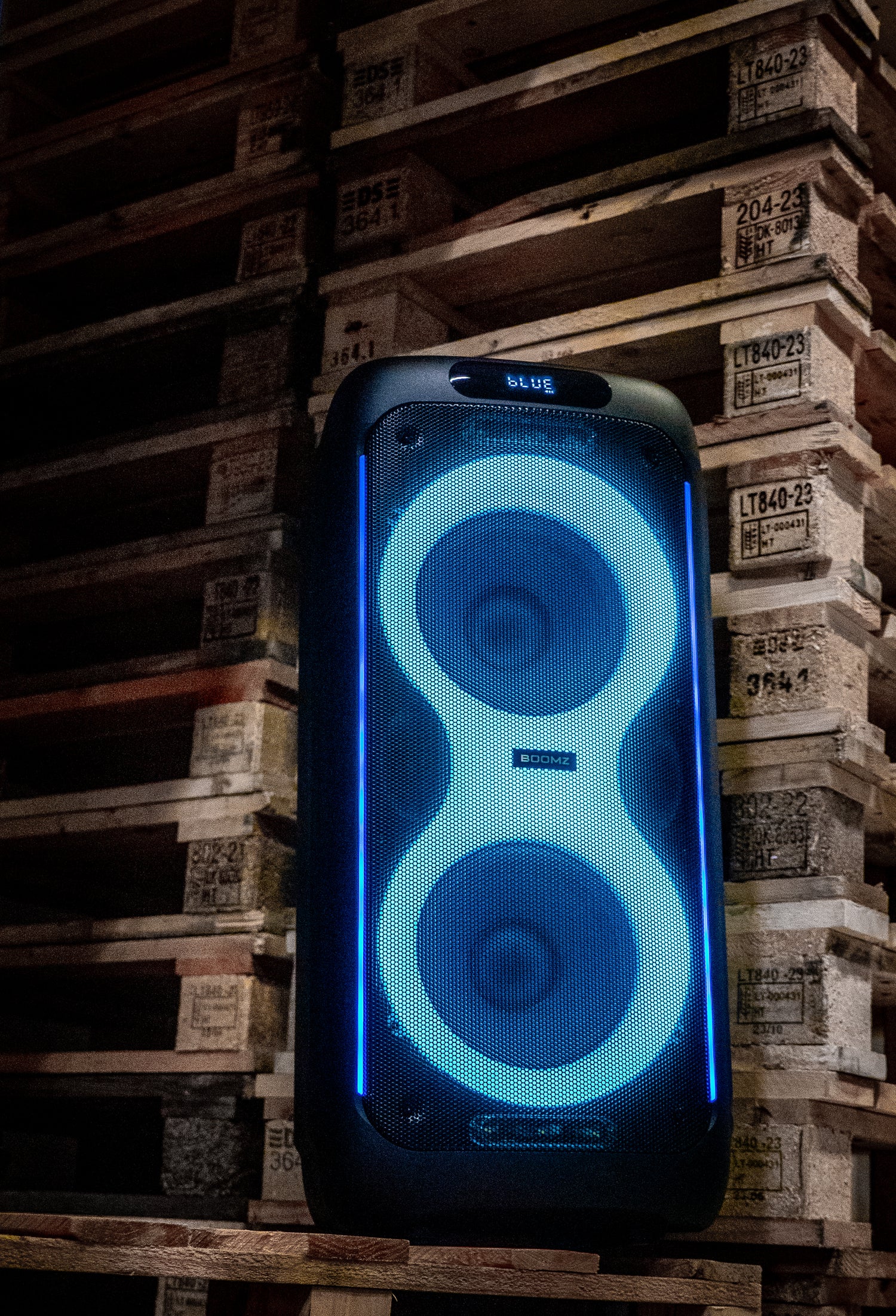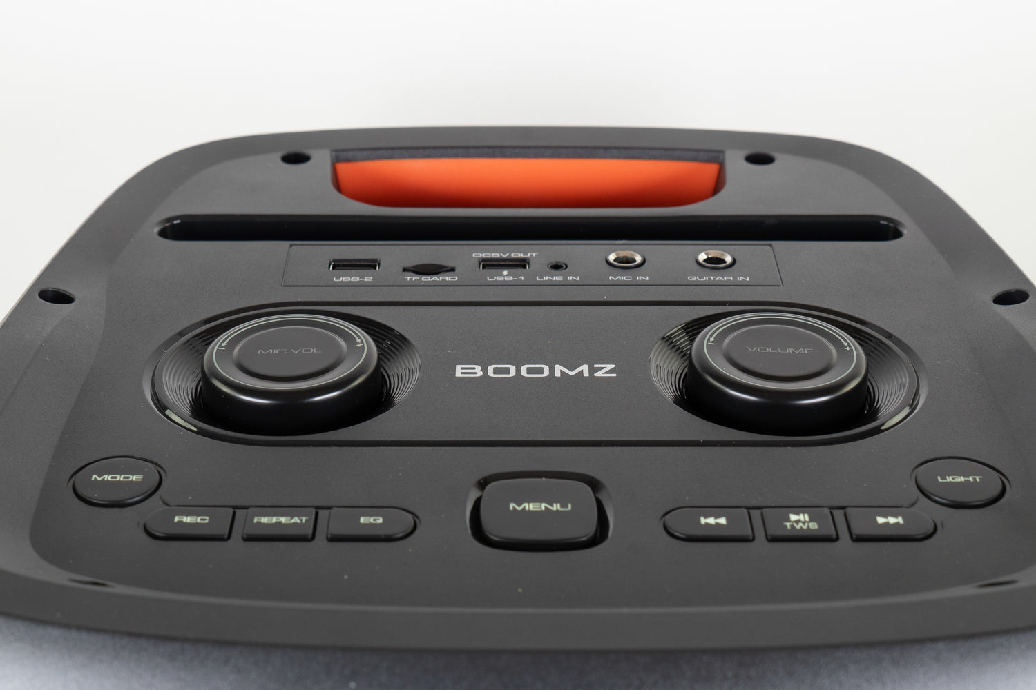 - Boomz Eight er en kompakt og velspillende festhøjttaler med et dynamisk lysshow, der er perfekt til hjemmefest, en tur på stranden eller festival.