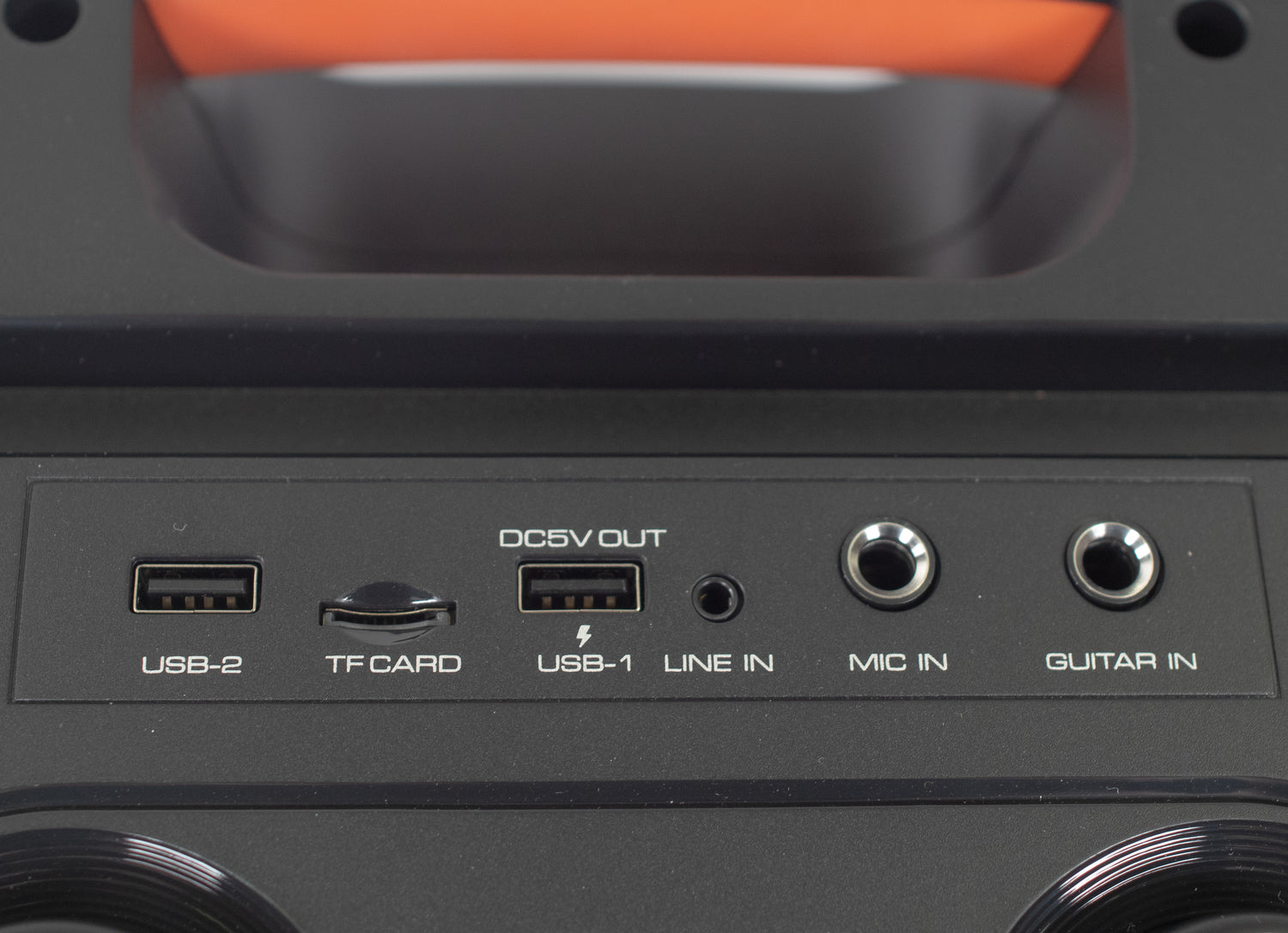 - Lydindgange: Bluetooth, FM, USB, TF-kort, AUX og MIC-indgang