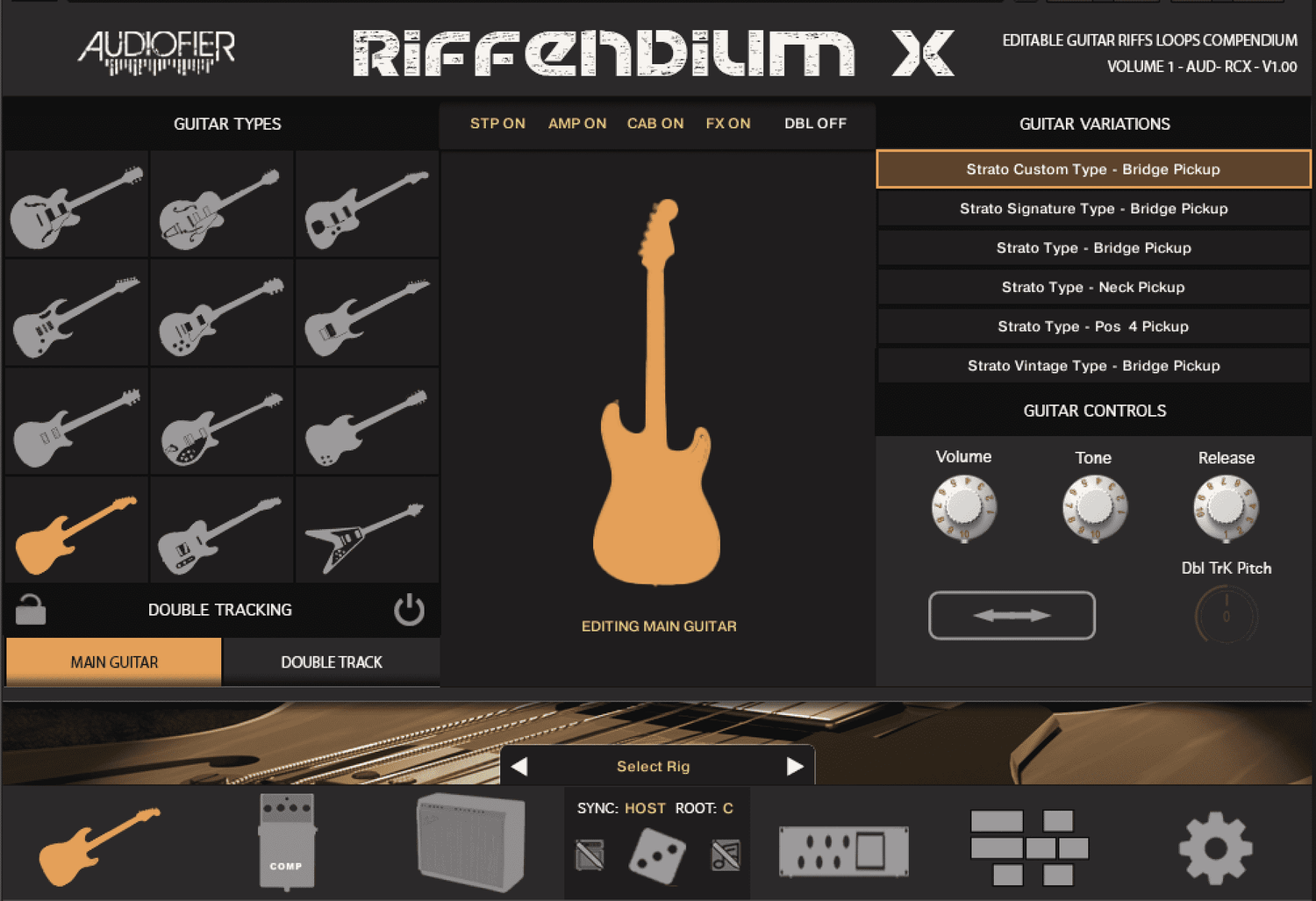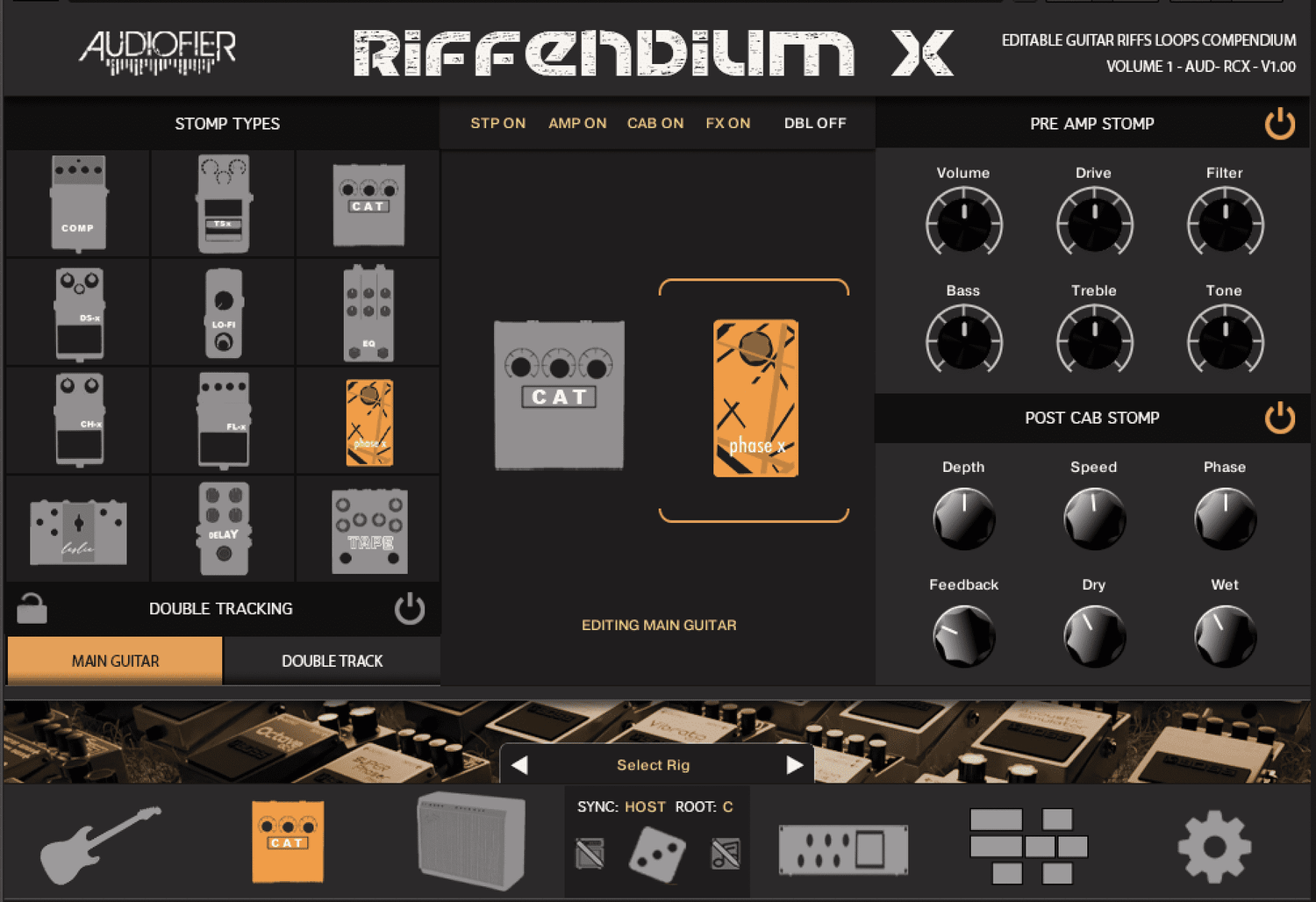 Udforsk den twangy bid fra en Telecaster, den glatte rigdom fra en Jazzmaster, eller det ikoniske brøl fra en Les Paul. Riffendium X har et arsenal af 12 pre-amp og post-amp stomp effekter til yderligere at forme din lyd.