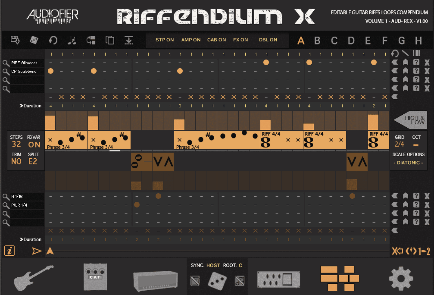 Riffendium X’s hjerte ligger i dens sequencer side. Her bygger du dine riffs og skaber komplekse rytmer og melodier med lethed.