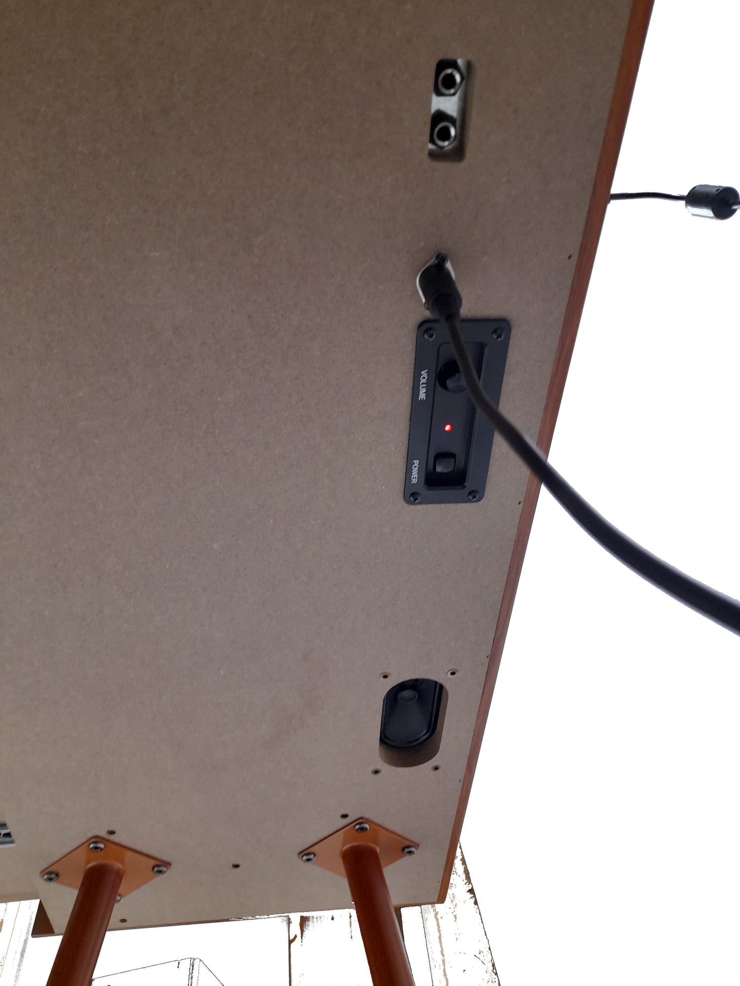 - Smukt design i teak farve, med låg og indbyggede højttalere.