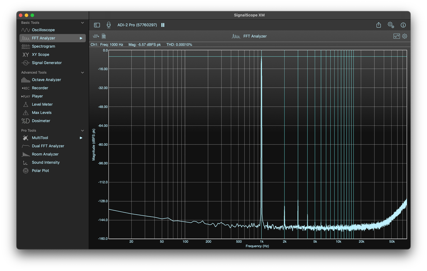 SignalScope XMs grundlæggende værktøjsæt inkluderer adgang til et sæt af grundlæggende analyseværktøjer, plus specialiseret hardwareunderstøttelse, såsom automatisk indlæsning af fabriksleverede mikrofonfølsomheder for udvalgte USB-mikrofoner, opdaterede nominelle spændingsfølsomheder for udvalgte lydindgangsenheder og automatisk kalibrering for lydindgangsenheder, der inkluderer indbygget følsomhedsinformation.