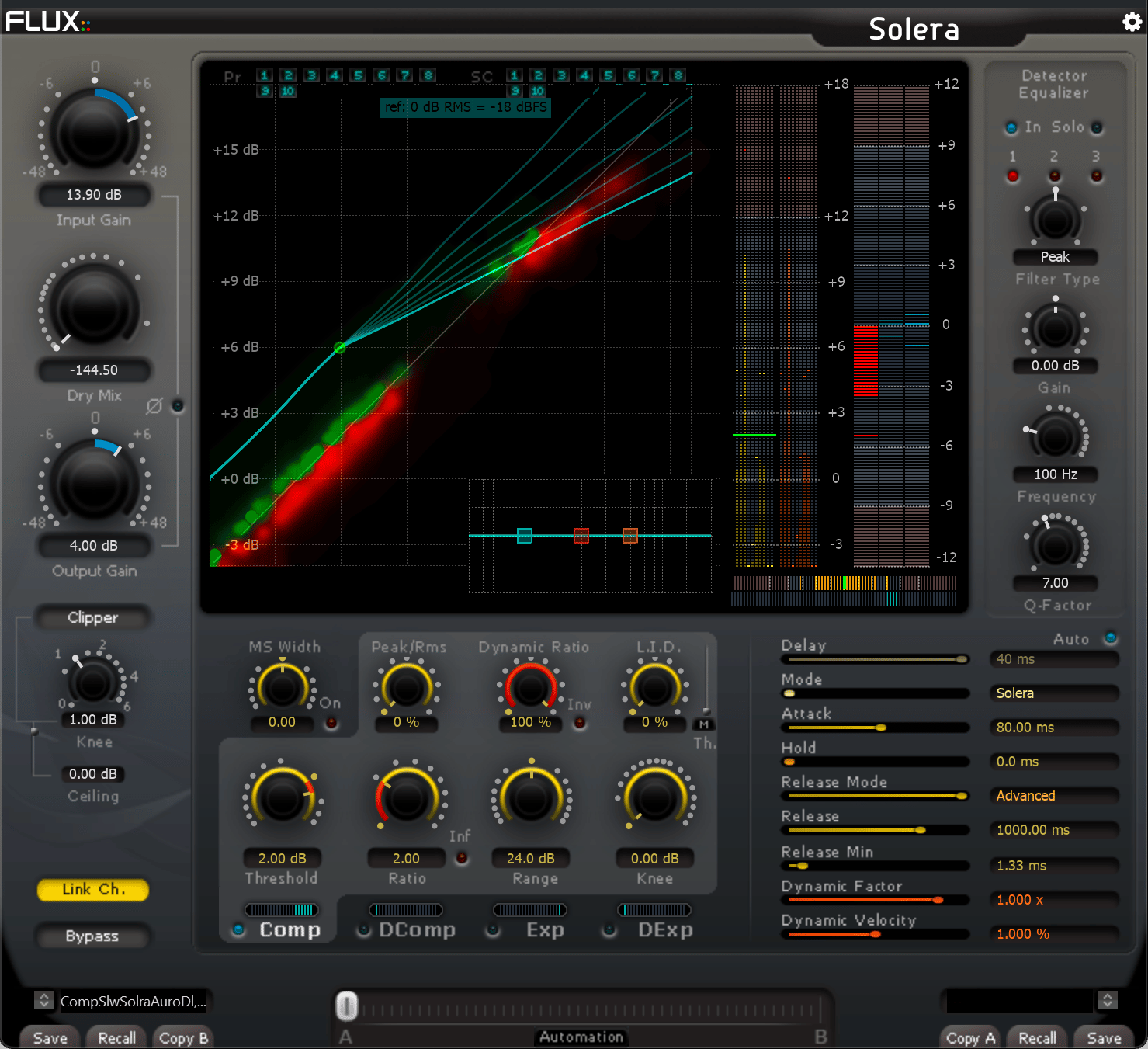 Solera er en omfattende dynamikprocessor til hele båndet, der kombinerer kraften fra en compressor, expander, de-compressor og de-expander, alle fire processer kørende parallelt, designet til at levere kraftfuld dynamikbehandling til enhver udfordrende situation og samtidig bevare eller genskabe den sande naturlige kvalitet af lydmaterialet uden at tilføje nogen artefakter.