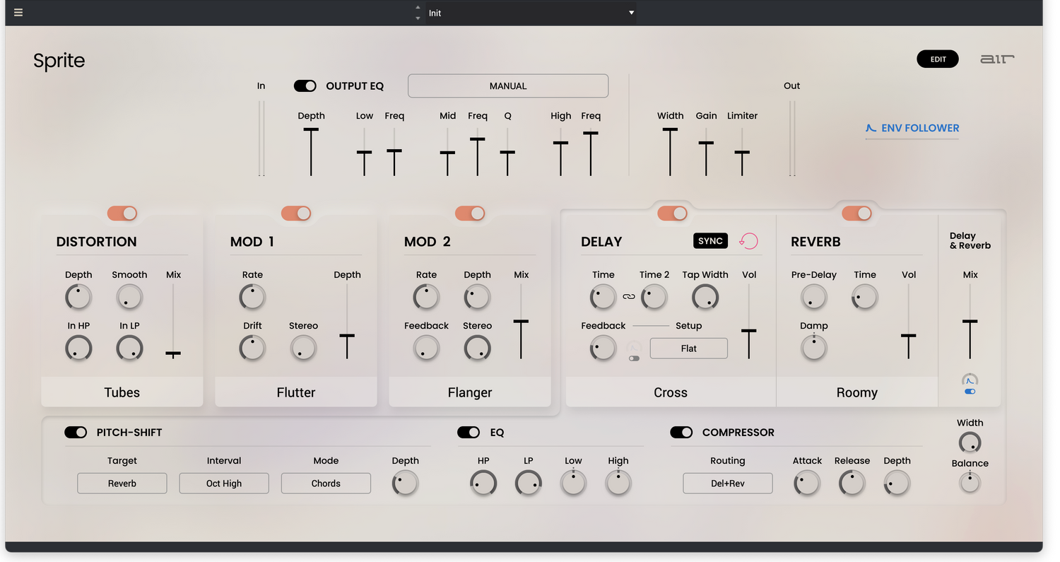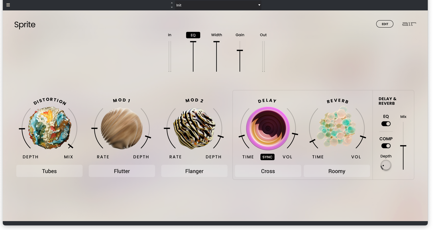 Air Sprite, en moderne fortolkning af studiehardwareklassikeren fra 80'erne og 90'erne, multi-effects processor. Sprite gør ting, der ikke er mulige i en hardwareenhed.