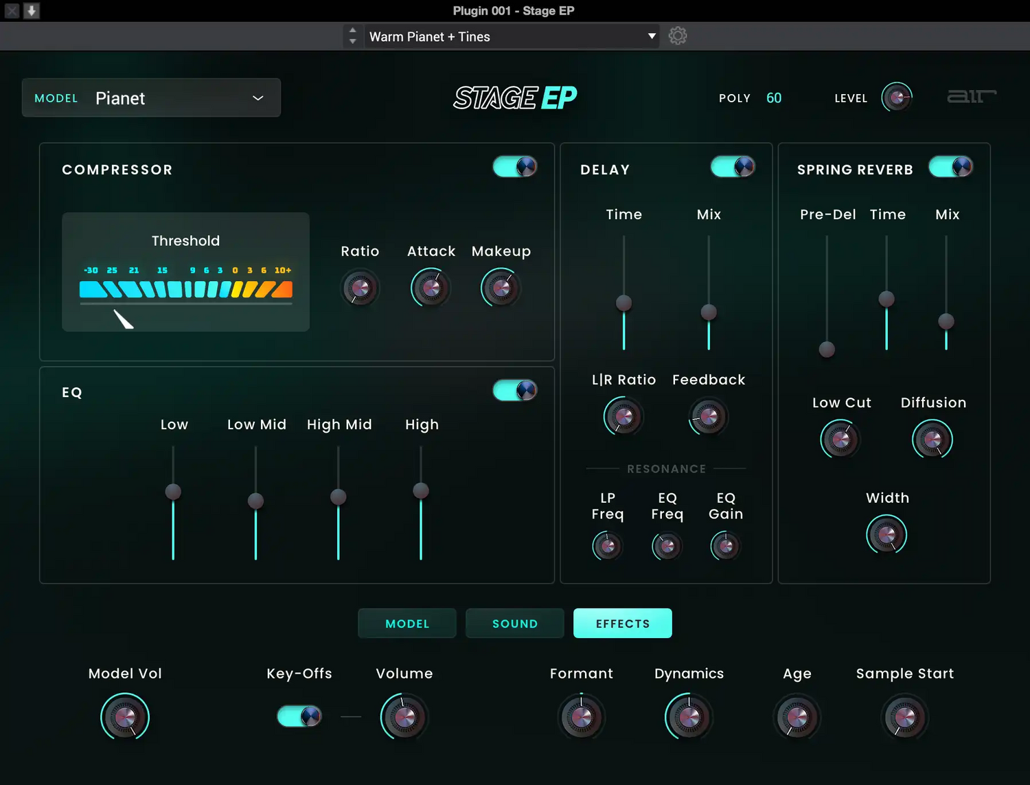 Baseret på et af de mest anerkendte og legendariske EPs i historien, er Wurli-modellen til Stage EP baseret på designet “struck strings and reed”, som giver den en sød, vibrafon-lignende tone.