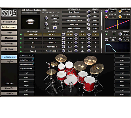 Den opdaterede GUI i SSD 5.5 gør det lettere end nogensinde at tilpasse dine trommer. Du har fuld kontrol over dynamikken, panorering mulighederne og ADSR indstillingerne for hvert instrument. Mix problemfrit ambient room mics og close mics med tilpassede routing muligheder. Nævnte vi, at du endda kan ændre størrelsen på plugin?