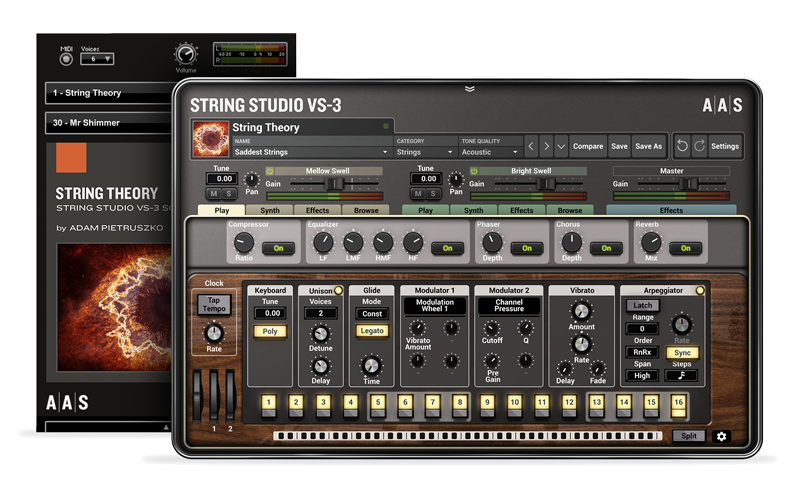 Fra strenge til et bredt udvalg af baser, leads, plucks, pads og keys, med tonale kvaliteter der spænder fra akustisk, over elektrisk, til yderst syntetisk, danner String Theory en omfattende samling, der nemt kan tackle enhver musikgenre. Og med presets-noter deler Adam Pietruszko en enorm mængde indsigt om syntese samt ekspertinformation for at udnytte String Studio VS-3’s kapaciteter fuldt ud.