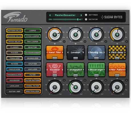 At beskrive Turnado som en multi-effekt processor fanger måske ikke essensen af, hvad det handler om. Du kan bruge reverb og delay på en subtil måde - men det, der gør det meget anderledes end en konventionel multi-effekt enhed, er kombinationen af effekttyper, der er tilgængelige, og dets realtids kontrolmuligheder.