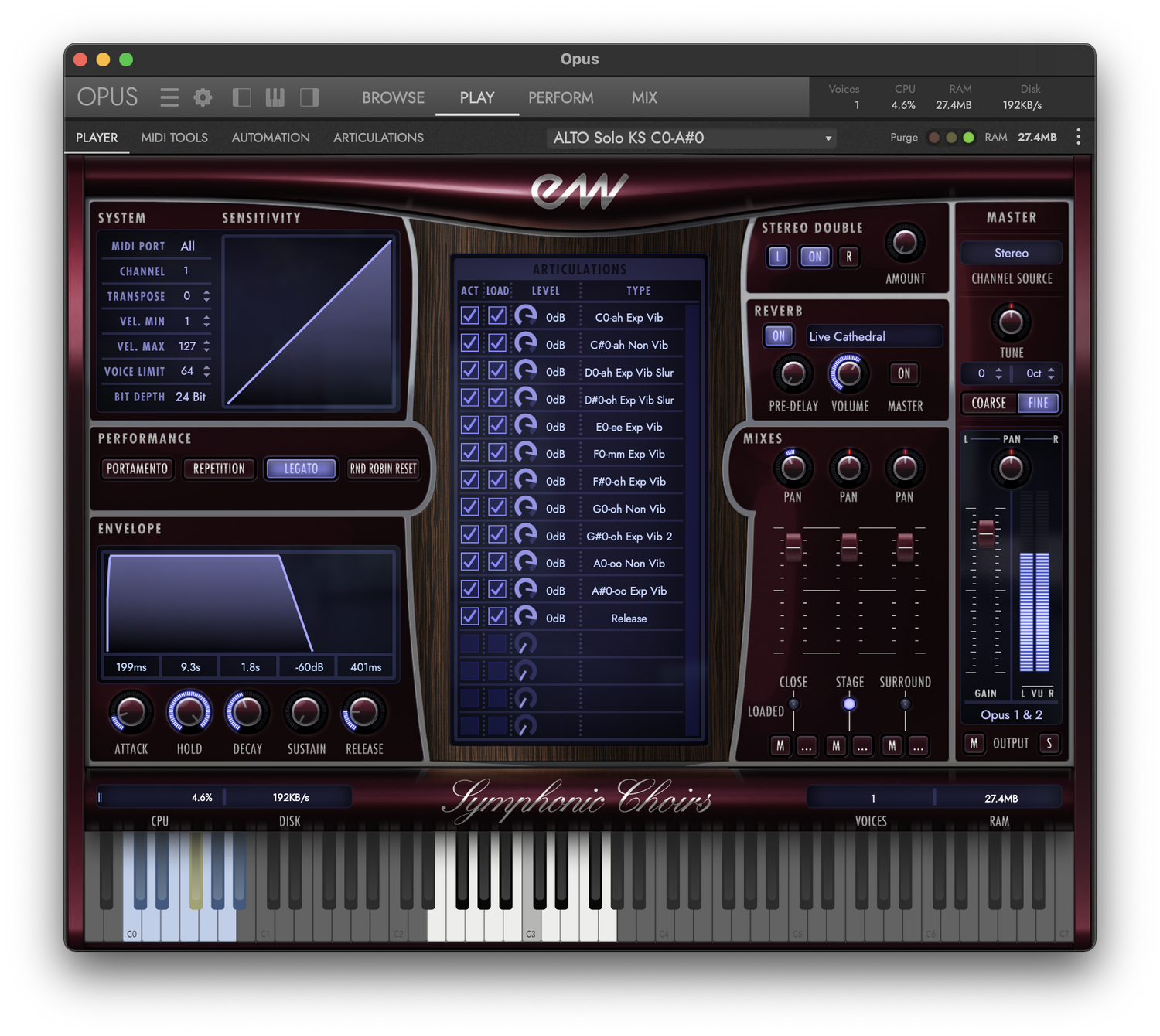 Forestil dig at skrive ord ind i din computer, på hvilket som helst sprog, og høre et verdensklasse kor synge dem i hvilken som helst toneart, du spiller ind i din session. Optaget i den samme koncertsal som EastWest’s Symphonic Orchestra, blander disse to sig sammen på en sammenhængende måde for at danne et kraftfuldt sæt værktøjer til at genskabe et storskaligt ensemble i enhver sang. Symphonic Choirs giver dig mulighed for at kontrollere hver sektion af et konventionelt kor separat, med tilføjelsen af et drengekor. Skabt med film- og videospilkomponister i tankerne, giver de justerbare mikrofonpositioner dig mulighed for nemt at designe det præcise stereobillede, der vil have den maksimale indvirkning på dine mixes.